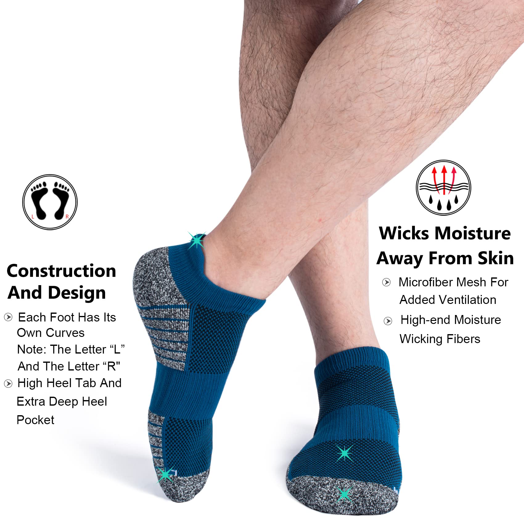 Moisture Wicking and Anti-odor: Made from high-end moisture wicking fibers, plus specially constructed, reinforced microfiber mesh for added ventilation, workout socks move perspiration away effectively from skin surface to keep feet fresh and dry; Excellent anti-Odor and anti-blister short socks help keep your feet in better condition