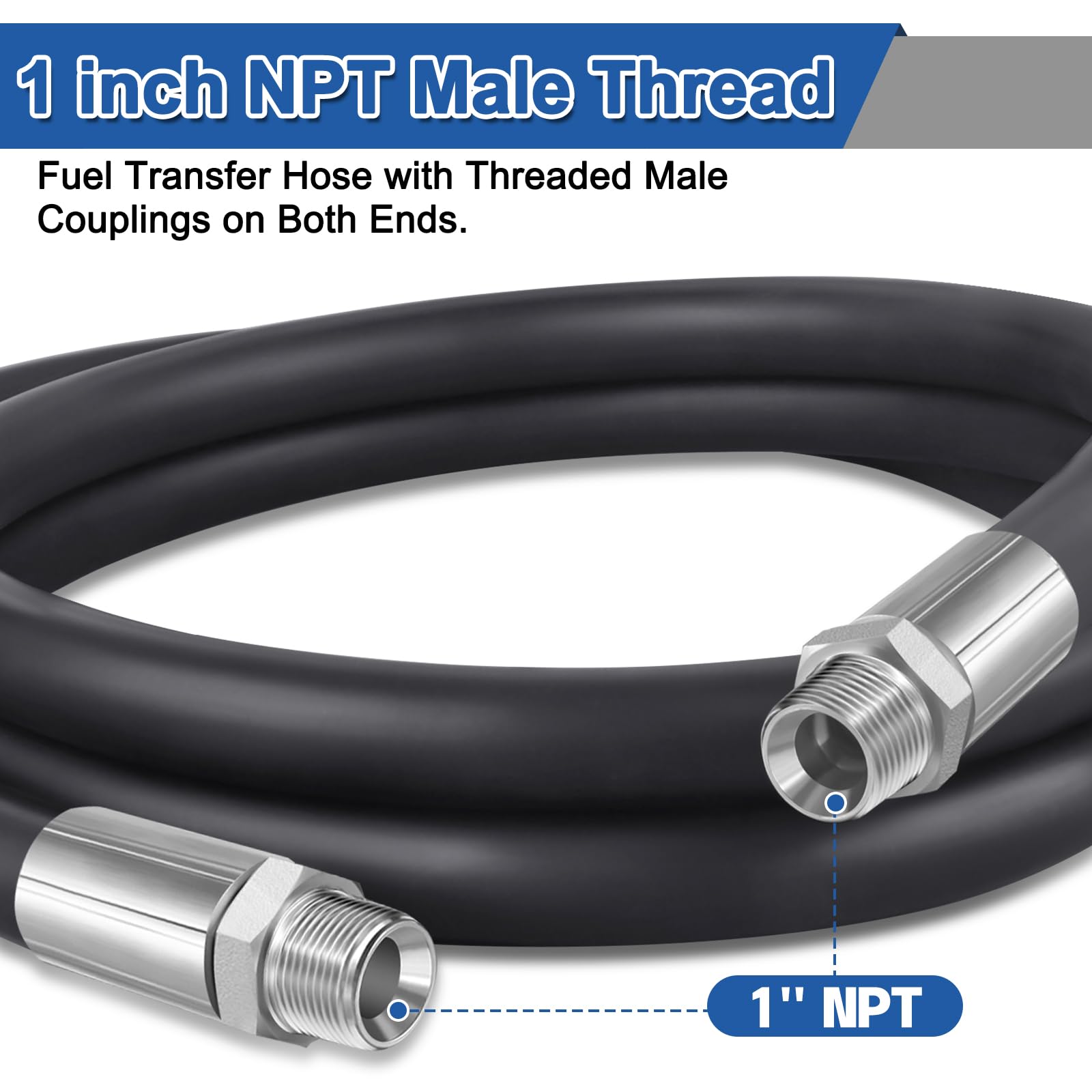 【Compatibility and Safety】The 1" NPT threading ensures compatibility with a wide range of fuel transfer equipment, such as pumps, nozzles, and tanks. This hose is designed to provide a secure and leak-free connection, ensuring safe and efficient fuel transfer without the risk of spills or leaks.