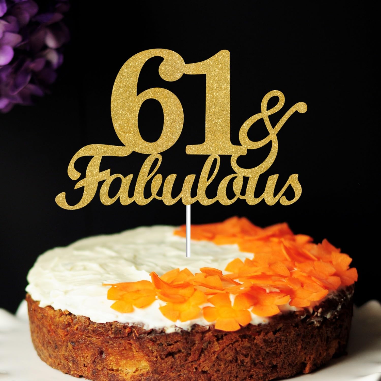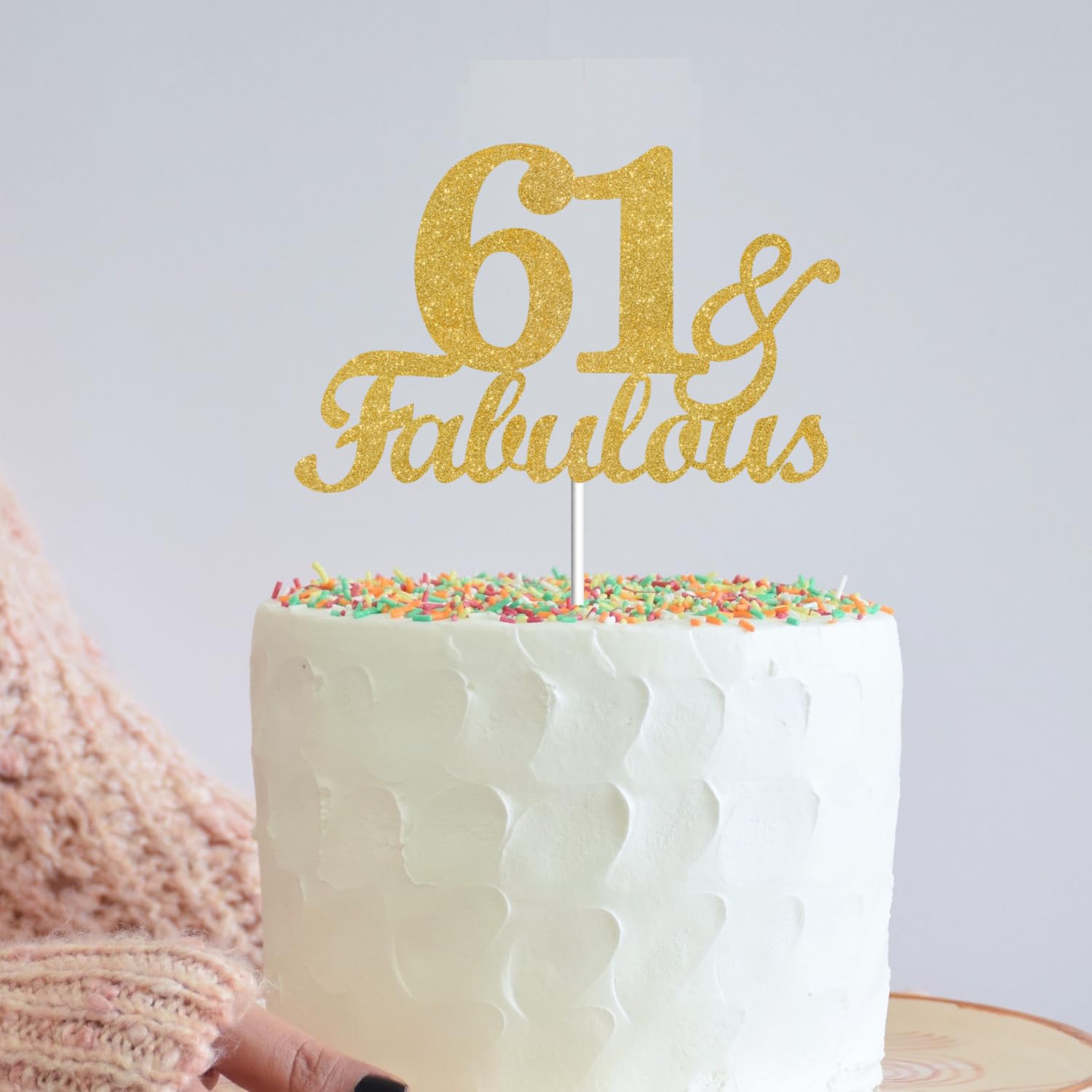 【PREMIUM PARTY SUPPLIE】This fabulous 61 cake toppers is made of quality glitter powder card and food-grade plastics, not easy to break or fade, smooth surfaces and no burrs, and the glitter on the surface is not easy to fall off, so you can use it with confidence.