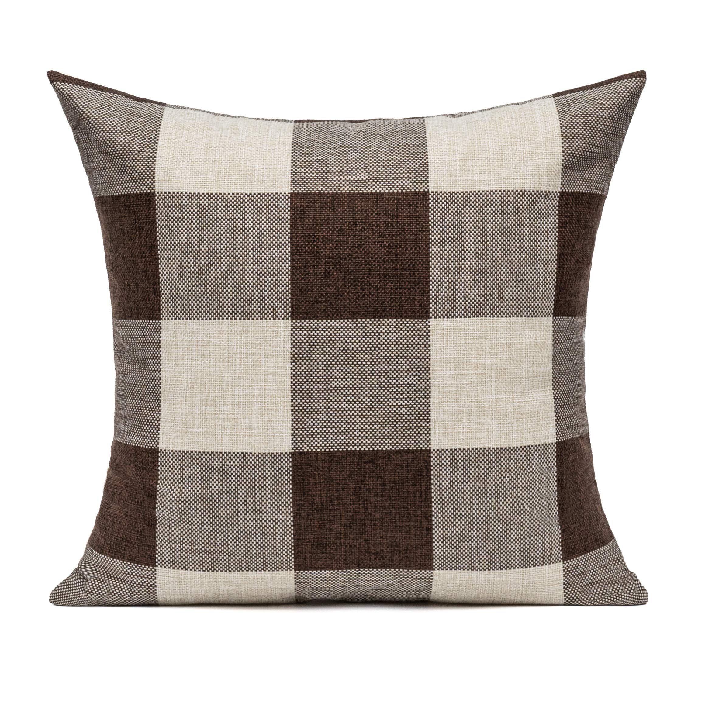 Set of 2 brown beige buffalo plaid cotton linen square throw pillow covers for home decor