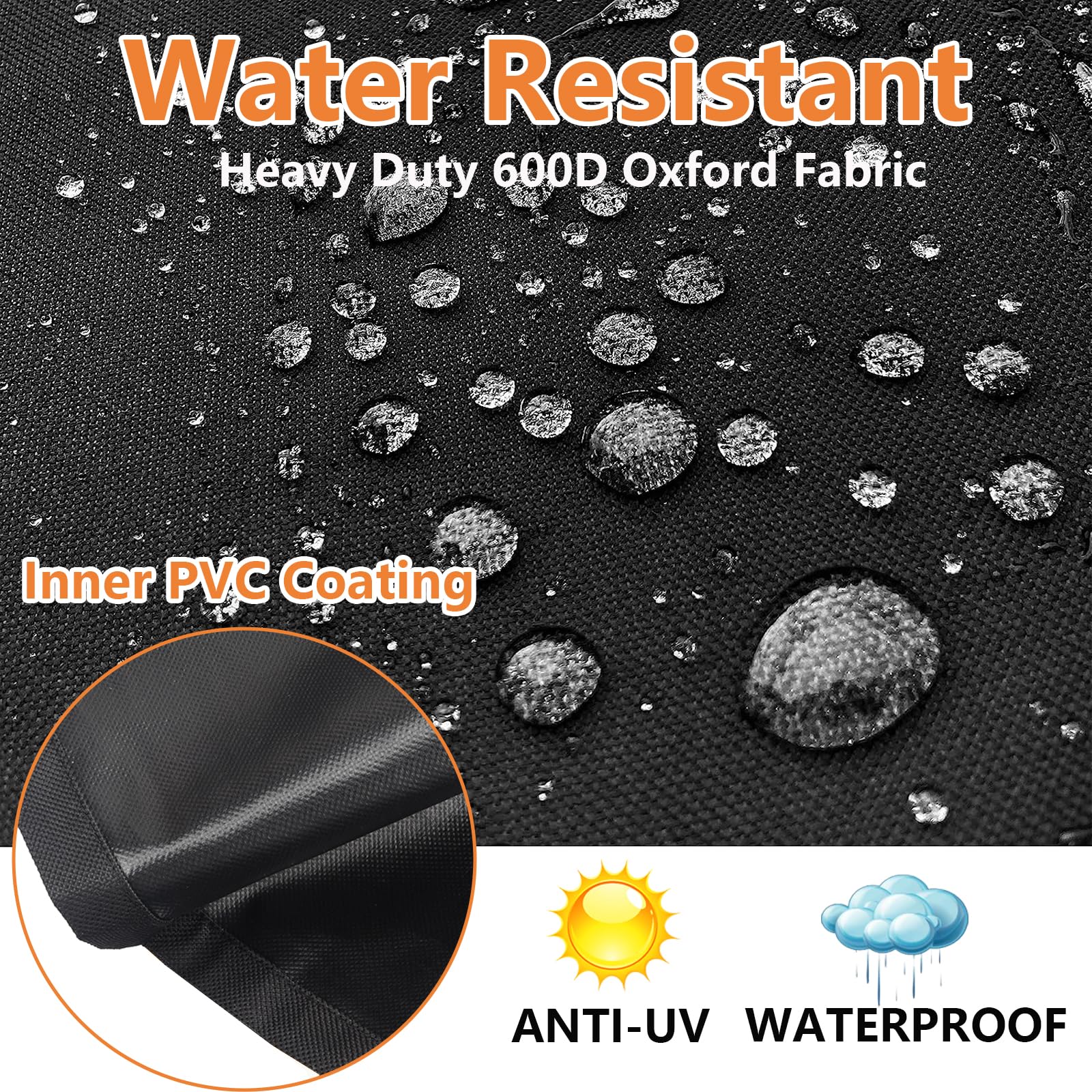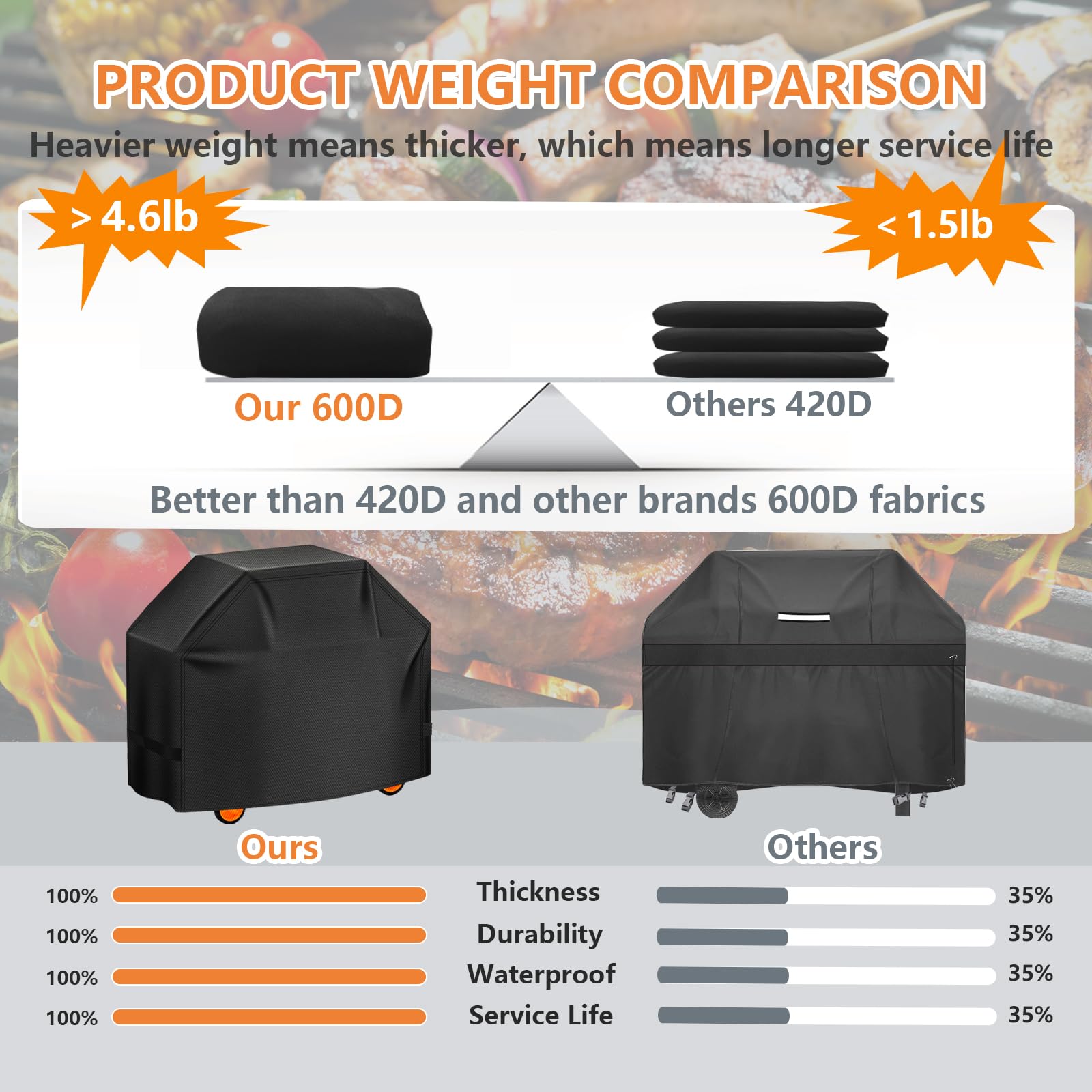 【Heavy Duty Fabric】- Made of heavy duty oxford material( Better than 420DFabric) and tear resistant PVC coated inner material. Heavier fabric means thicker, thicker fabric means more wear resistant, more durable, longer service life, with it, you don't have to worry about the grill getting wet, you won't have to buy new barbecue covers as often because of the purchase of non-durable barbecue covers. This grill cover will be your best choice.