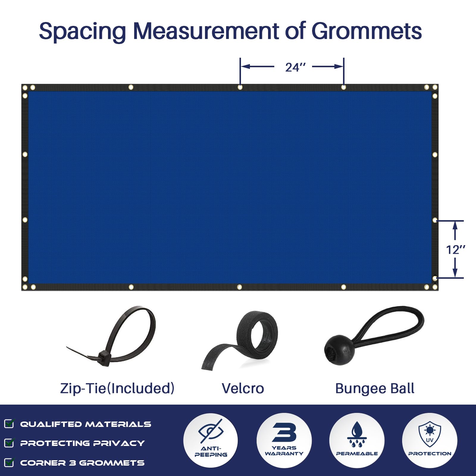 Easy to Install: Installation is easy and does not take much time. You only need to roll it out and use zip ties or ropes (Zip ties included in the package) to pass through the buttonholes and fix it on the fence or railing. All the sizes you need can be customized.
