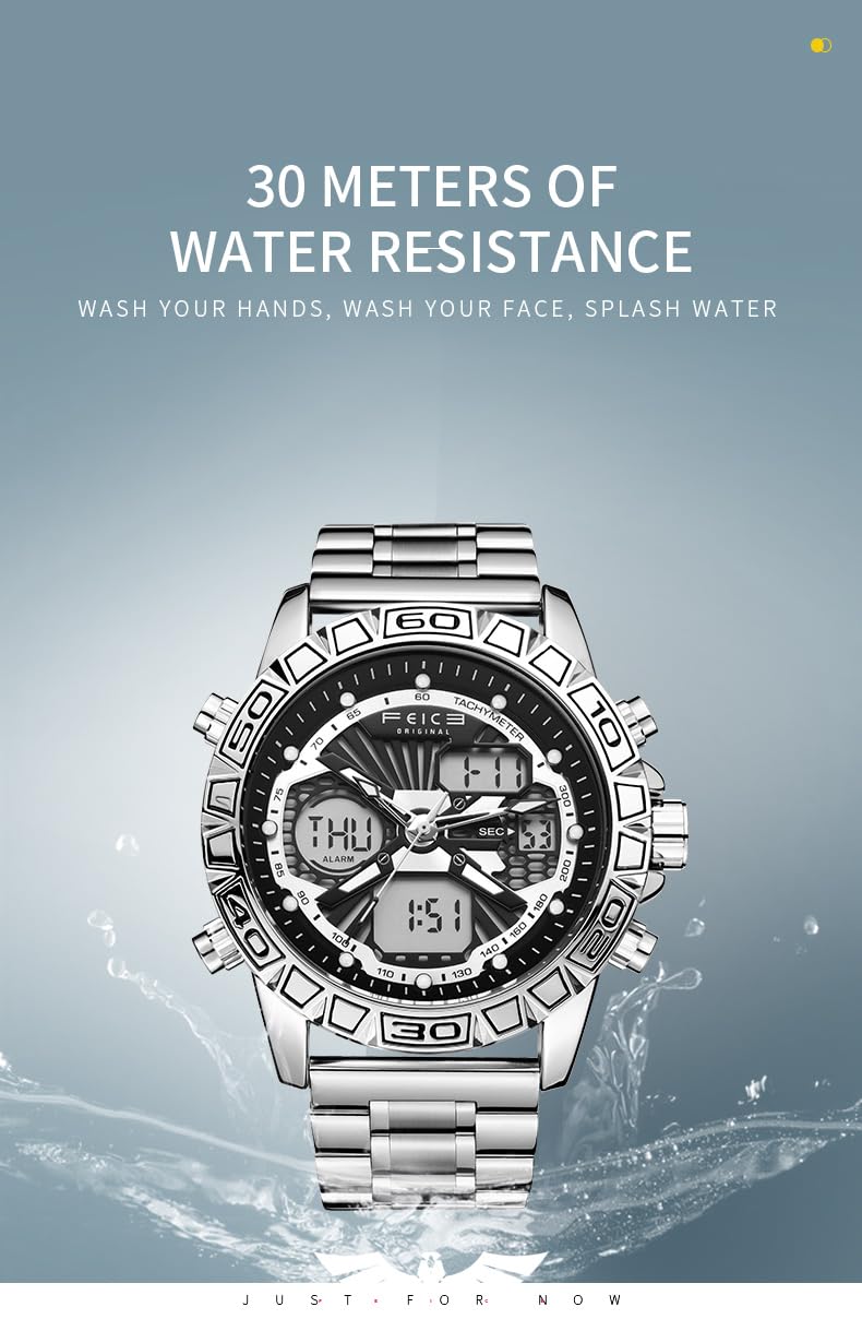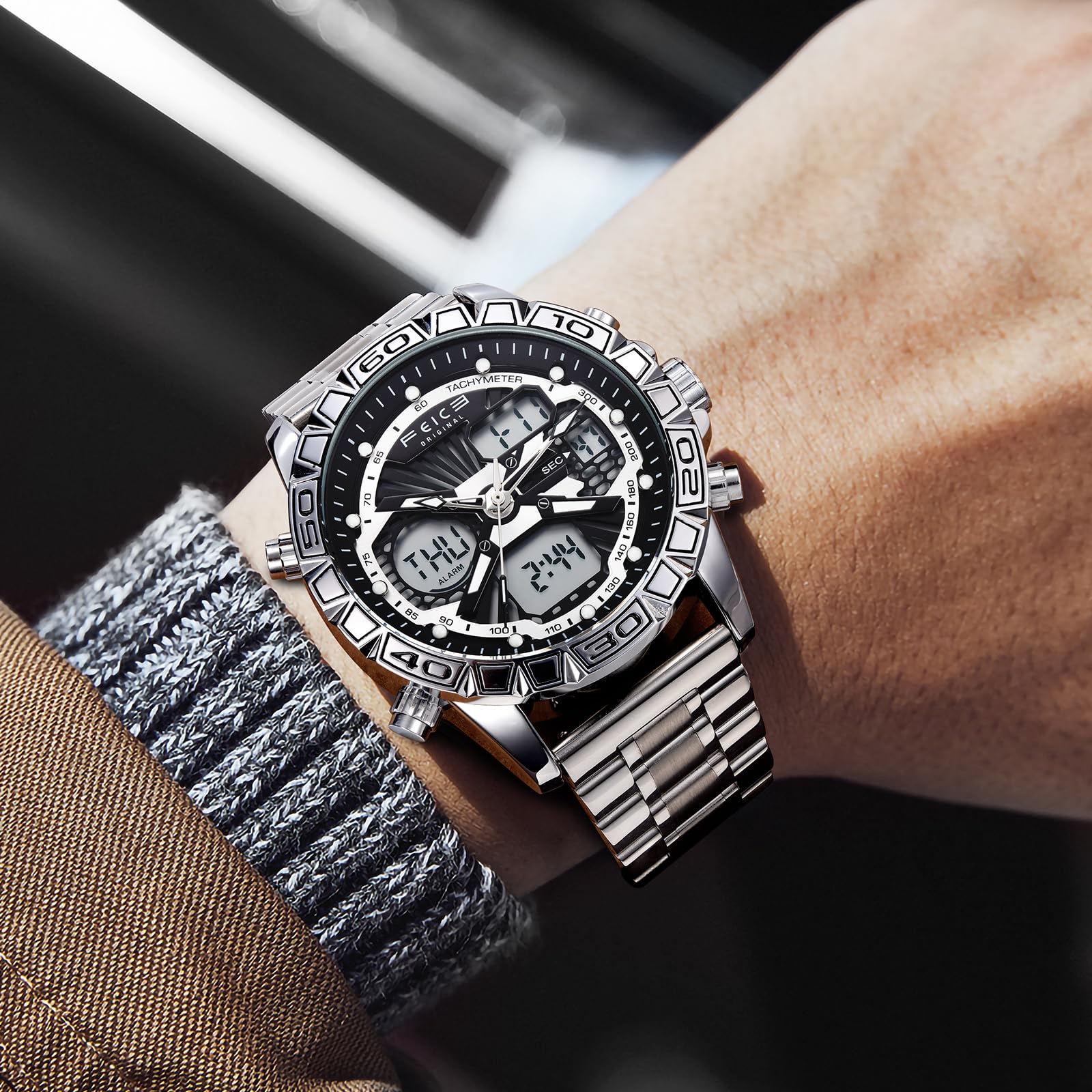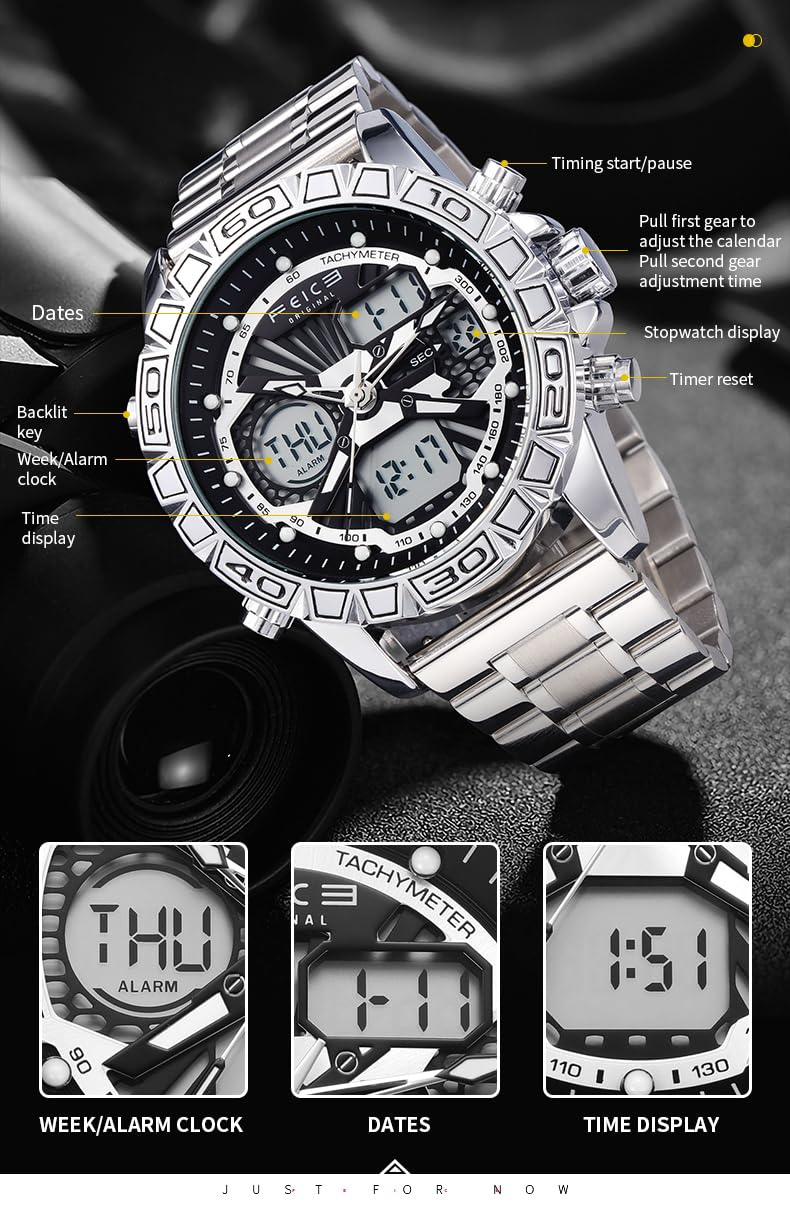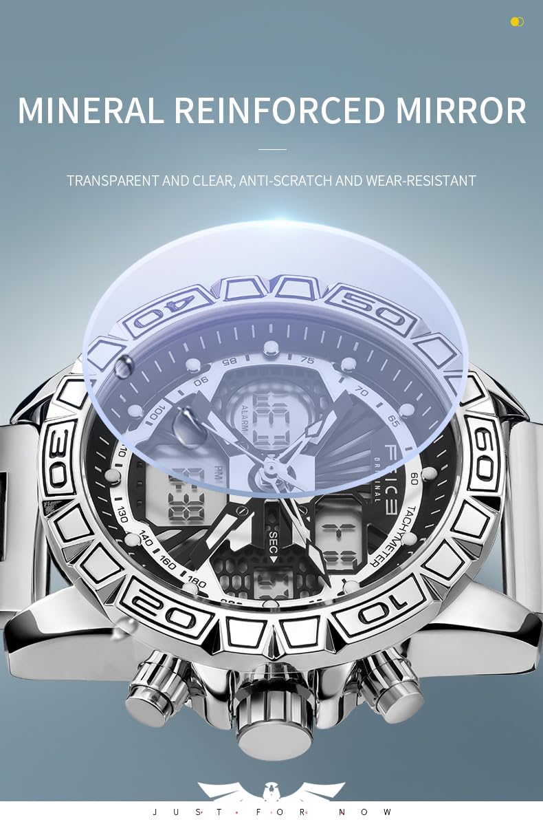 Premium Men’s Analog-Digital Watch: Combines classic analog display with modern digital functions, powered by Japanese quartz movement for precise timekeeping. Watch dimensions: 45mm case diameter, 14mm thickness, suitable for various wrist sizes.