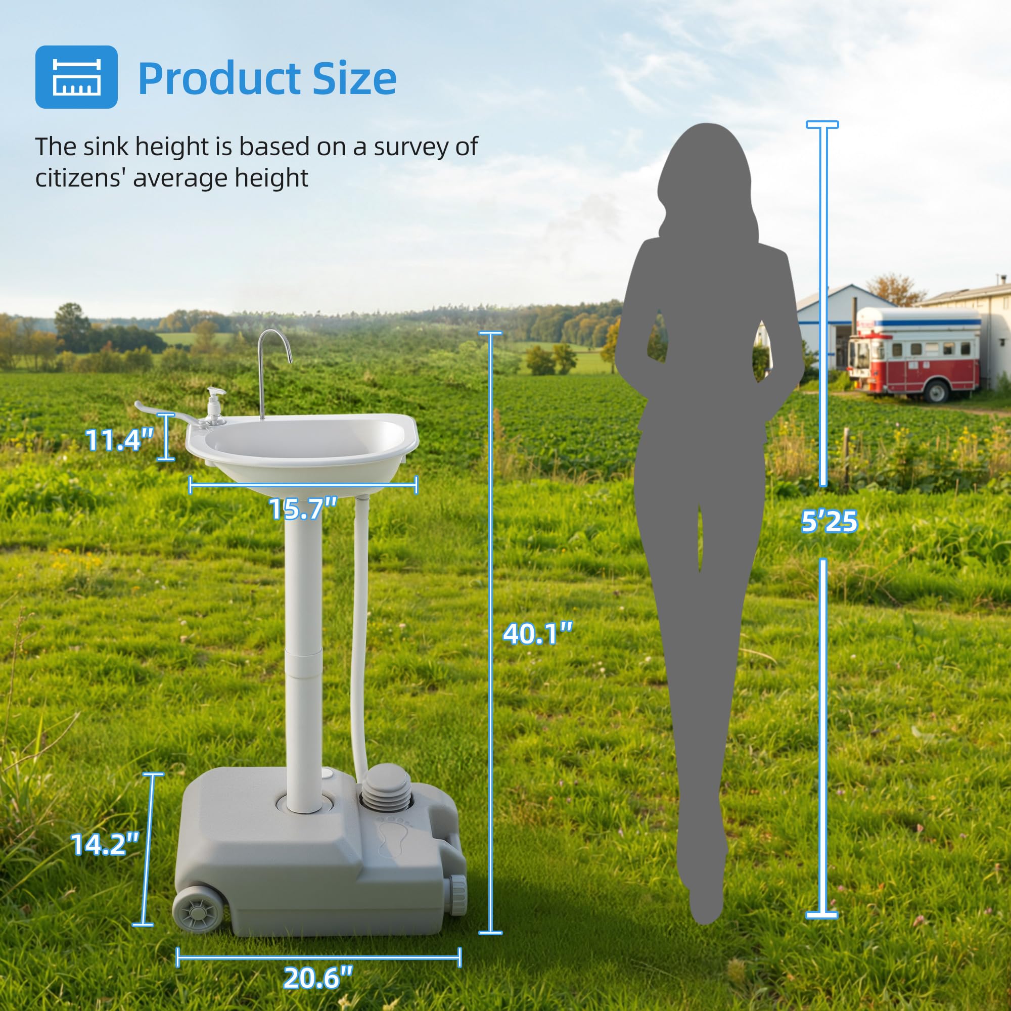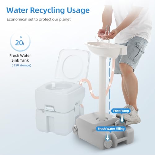 Step-To-Flow Convenience: When your hands are greasy from grilling or dusty from setting up camp, a single step on the mobile sink's foot pump gives you a refreshing stream. With a 20L (5.28gal) tank, you have plenty of clean water without frequent refills