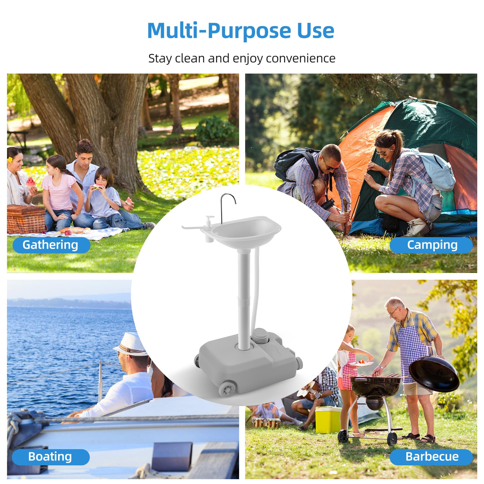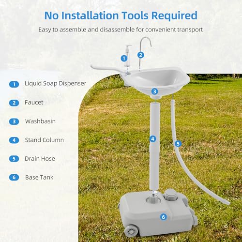 Roll and Ready Anywhere: Built-in wheels and a sturdy handle let you take the portable sink wherever adventure leads, from RV trips to boat docks. With clear step-by-step parts, setup is fast and effortless, so you get fresh running water right when and where you need it