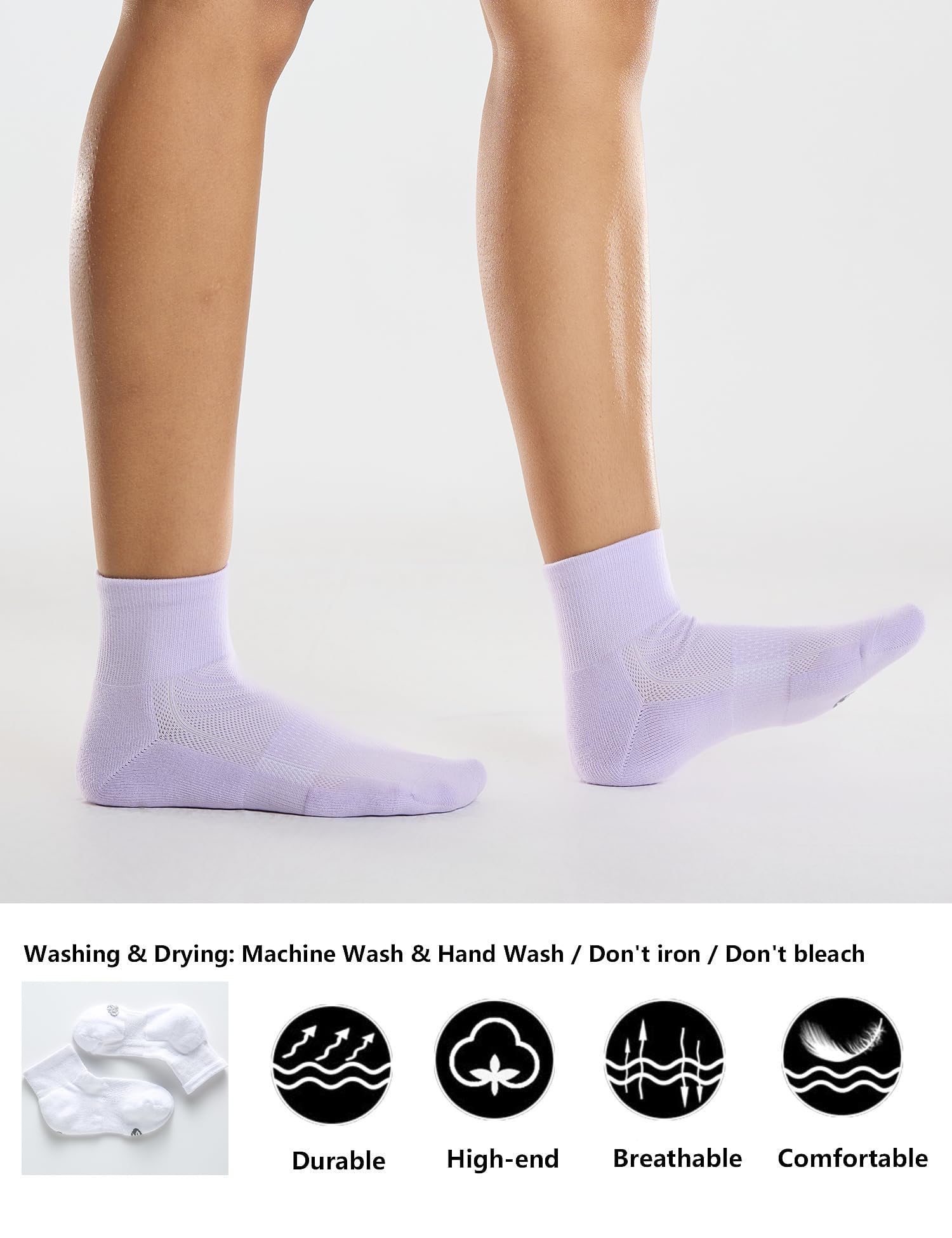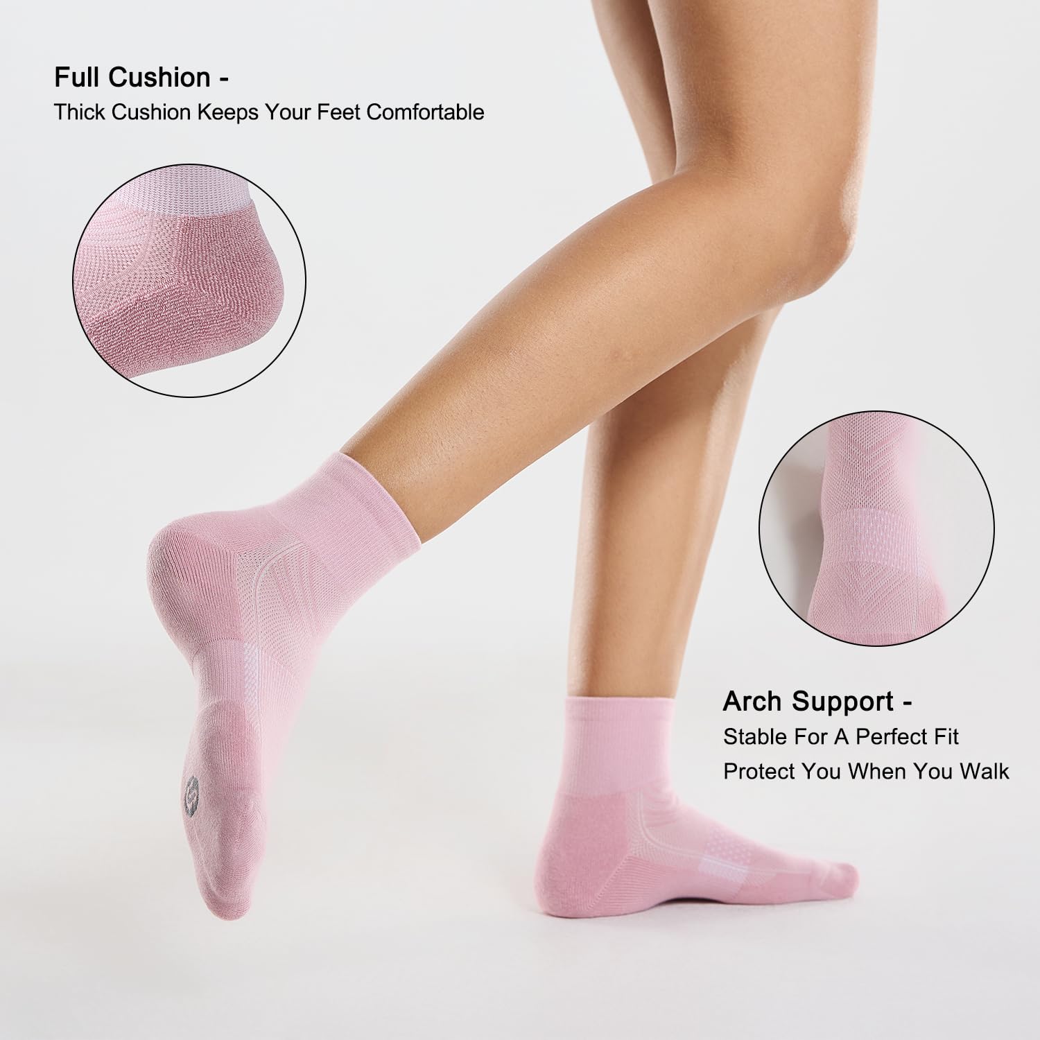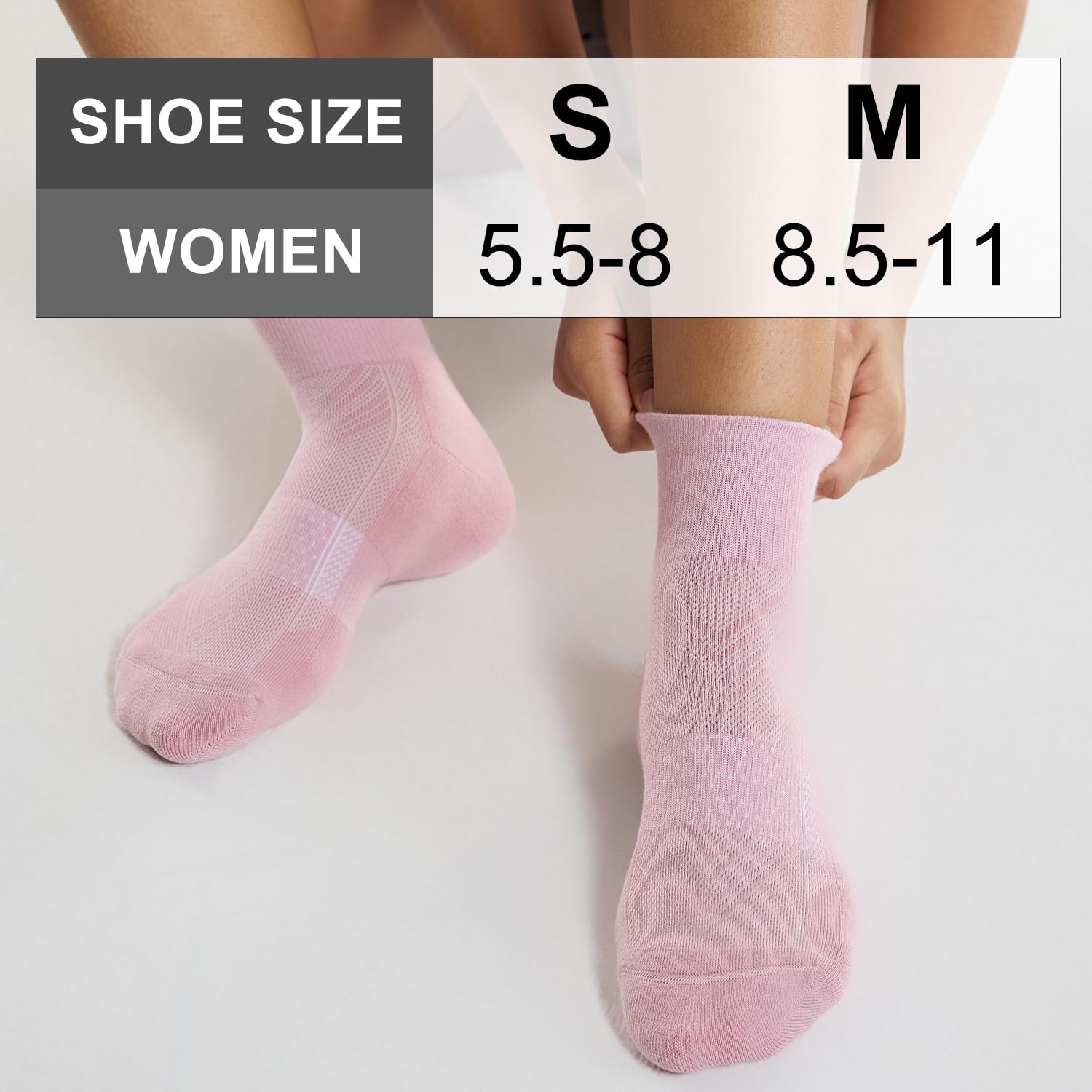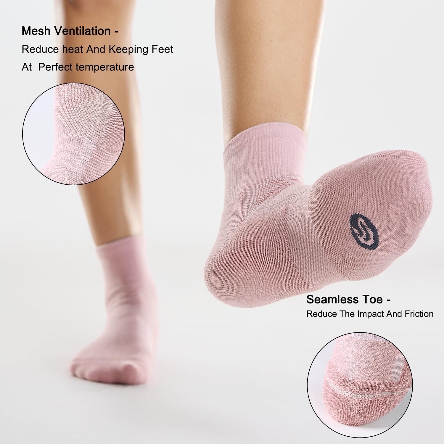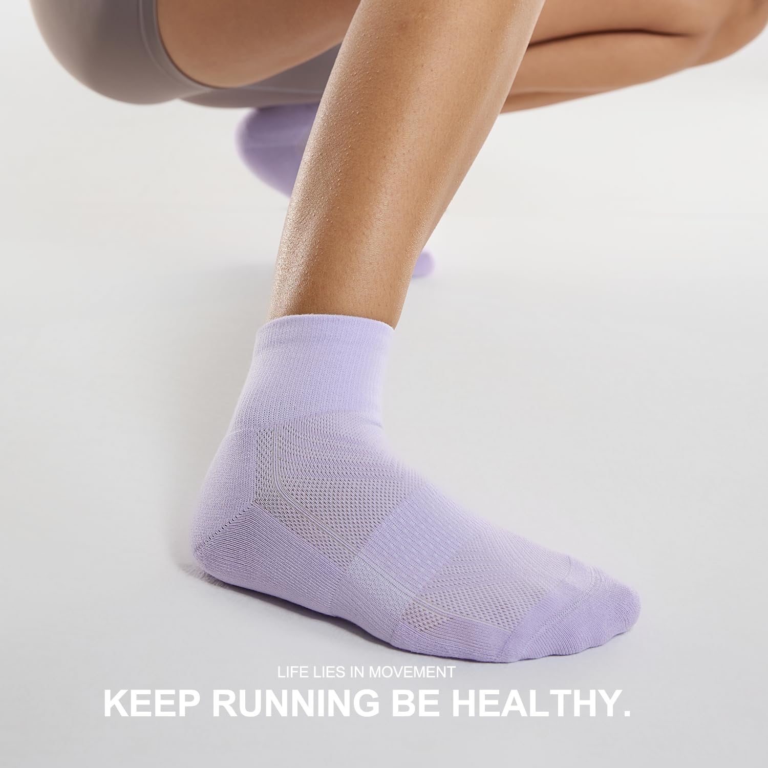 REINFORCED SOLE AND TOE: These women’s running socks with the cushion on the sole and toe are made of moisture-wicking yarns, which provide ultra comfort, and absorb impacts on the feet during activities. The seamless toe design can eliminate friction to prevent blisters.