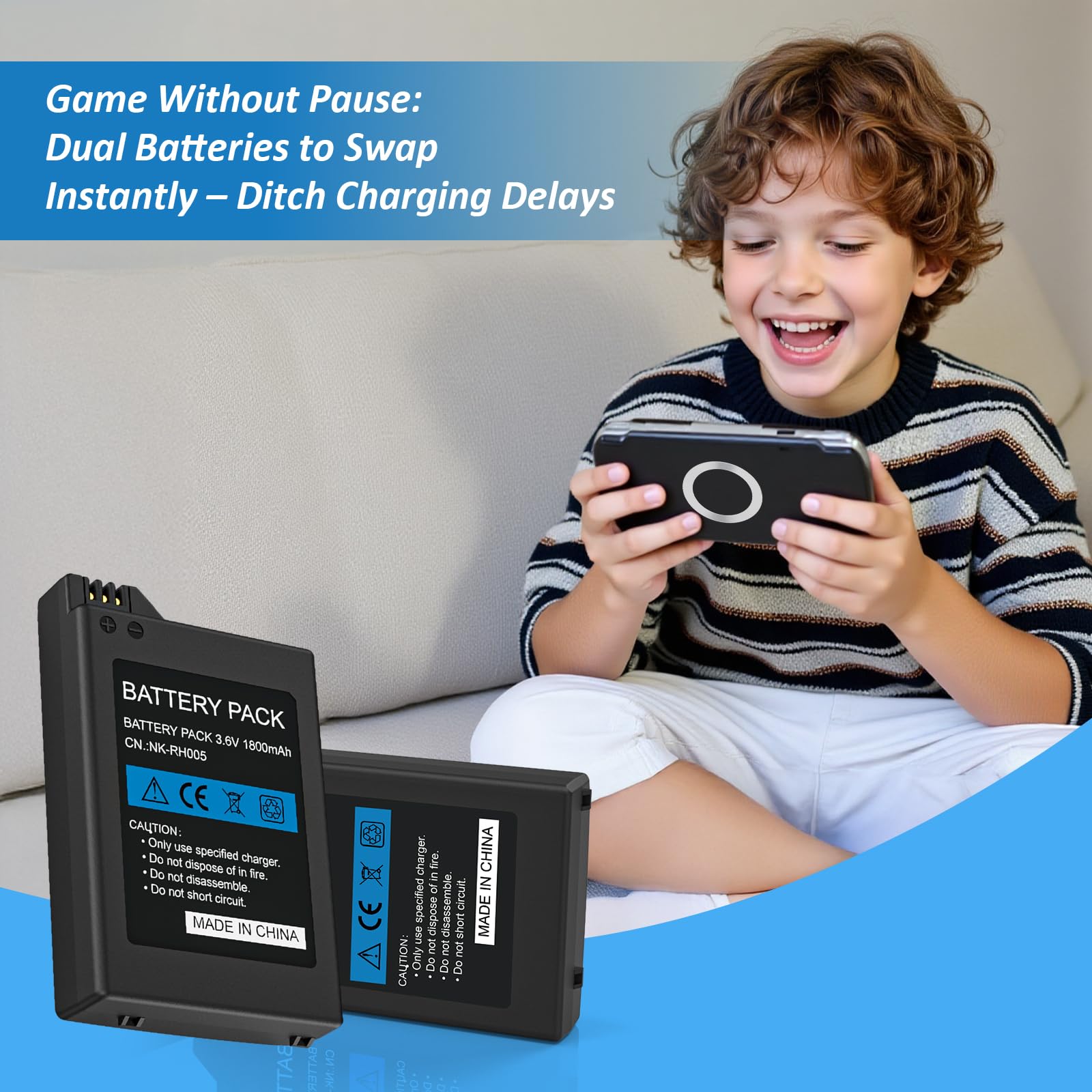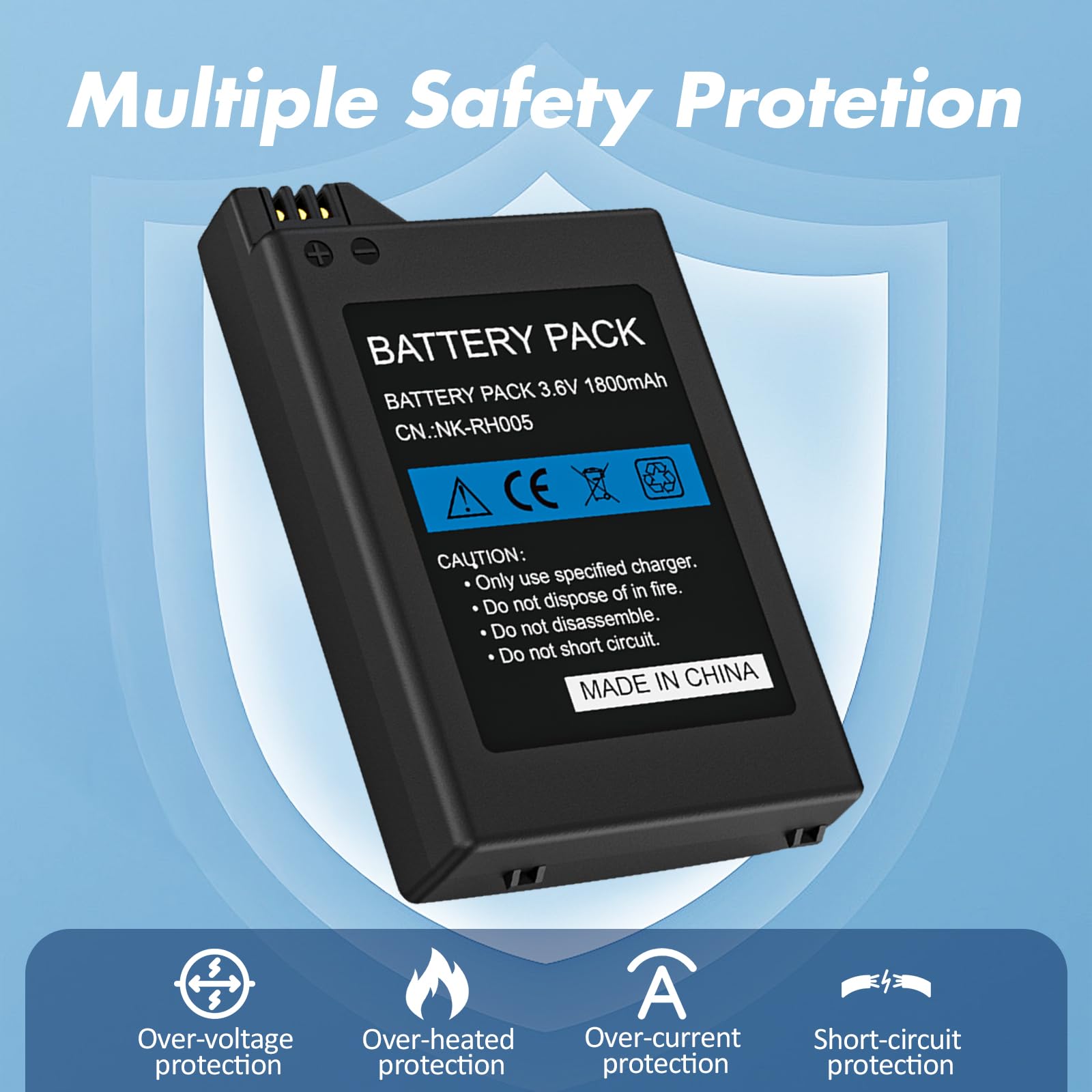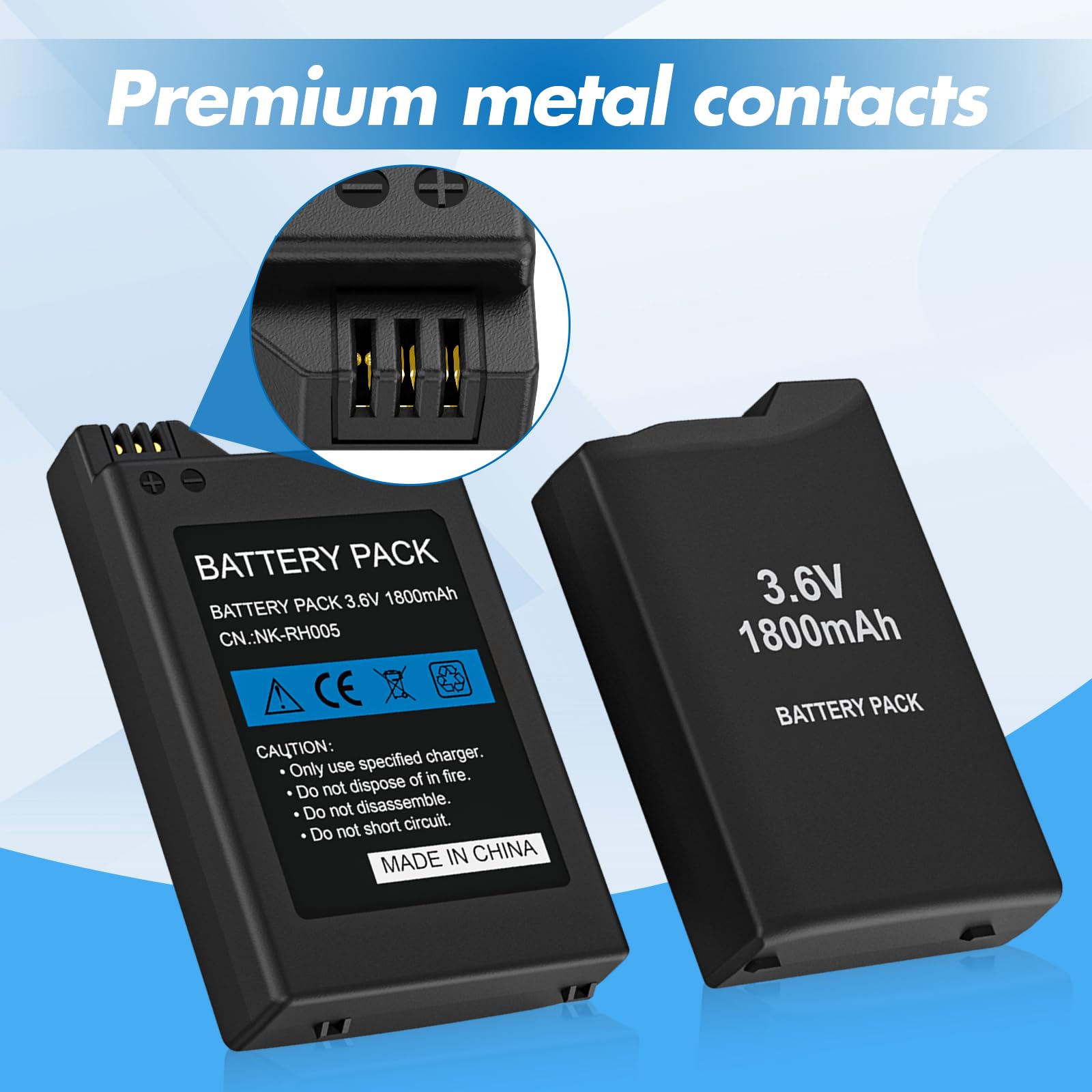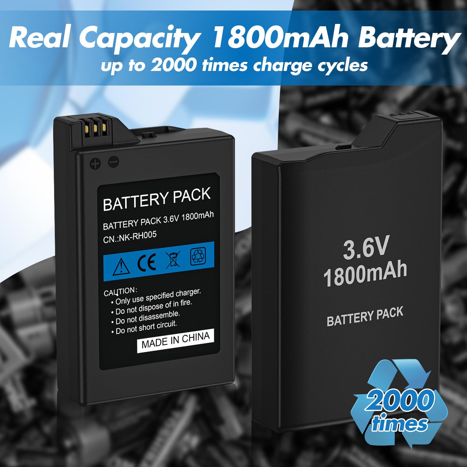 【High Capacity Performance】Our 2Pcs rechargeable battery pack offers a real capacity of 1800mAh, ensuring long-lasting power for your PSP devices, including PSP-1000, PSP-1001, PSP-110 and more. Enjoy uninterrupted gaming sessions with our reliable battery for PSP.