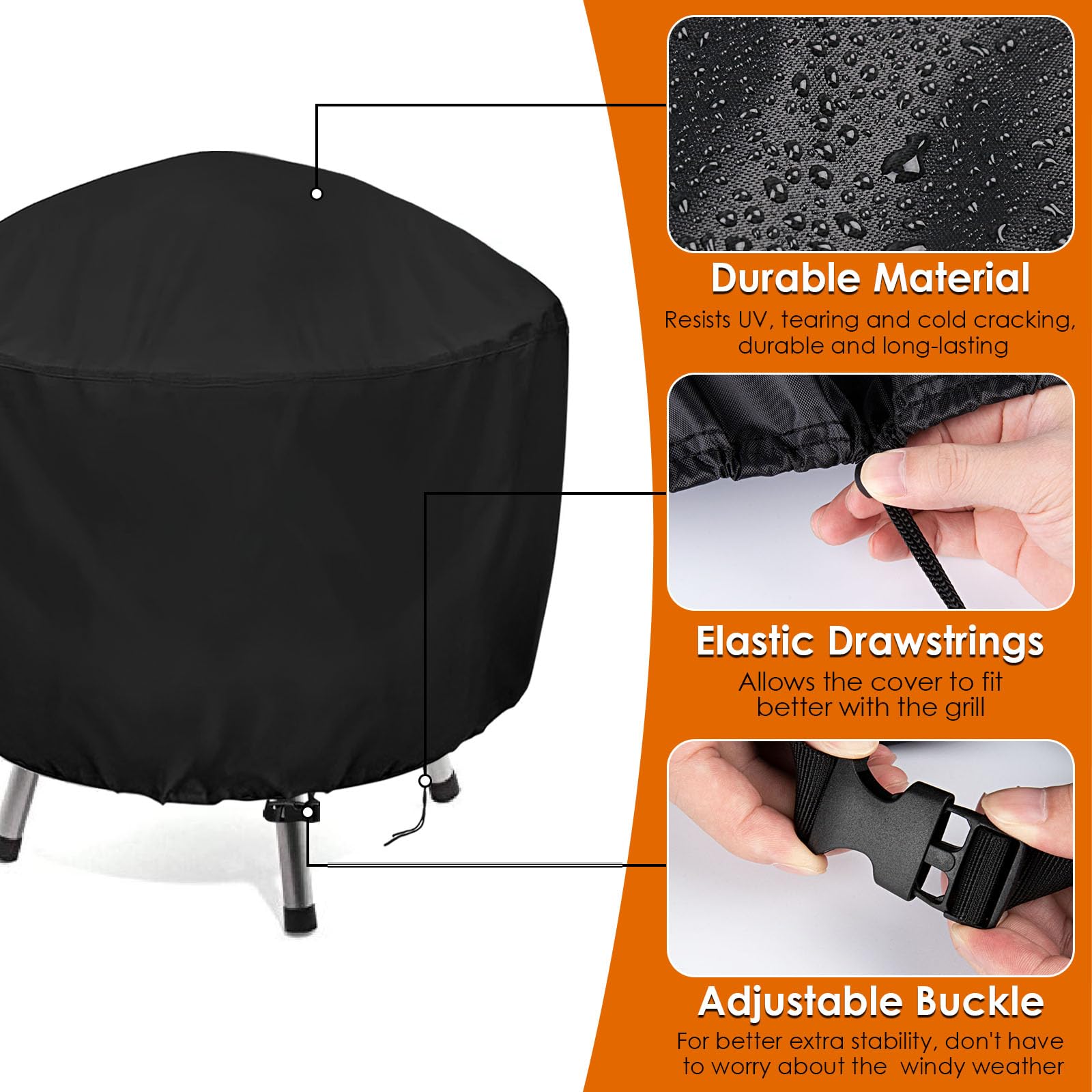 Drawstrings and Buckle: Elastic cord allows the cover to fit better with the grill. Adjustable buckle on the grill egs for better extra stability, so you don't have to worry about the impact of windy weather