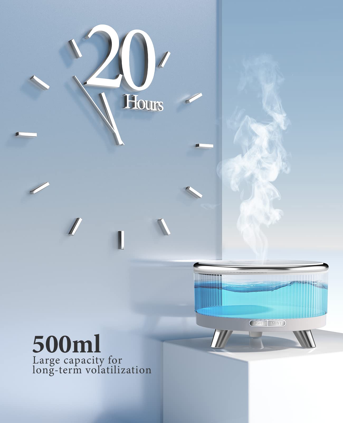 500ML Diffuser, Ideal for Large Room:The covering area reaches up to 480 ft², which can use in a large room.Enjoy up to 20 hours Fragrance. The three-time setting for option: 1/3/6H timer.