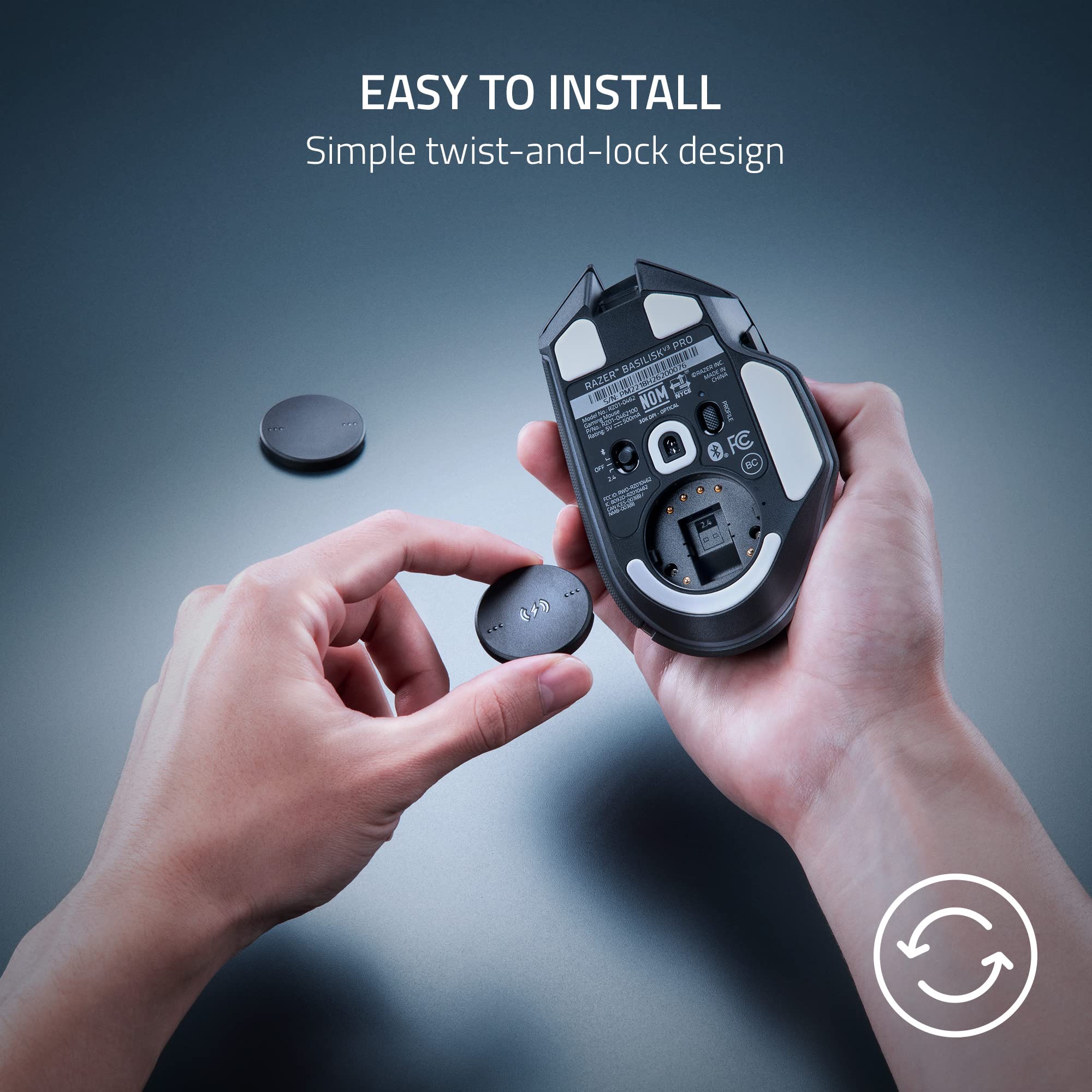 MAGNETIC WIRELESS CHARGING: Seamless, convenient charging by simply installing the wireless charging puck on the Basilisk V3 Pro mouse and place it onto the dock—a fit that stays secure while charging