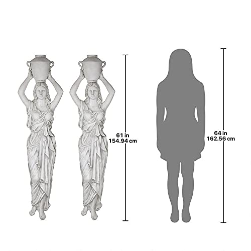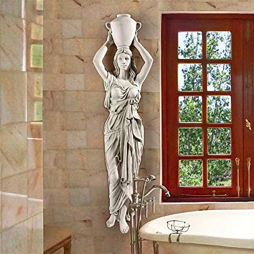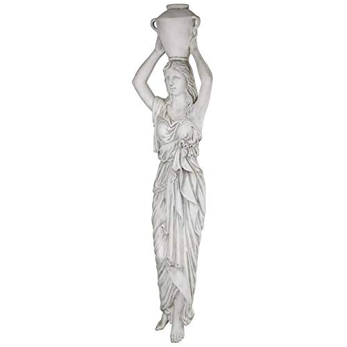 It's hard to imagine a more fittingly beautiful image to add to a spa or luxury bath than the most beautiful of the Oceanside's, Dione, the stately Water Bearer. Reminiscent of the caryatids that held up the classic baths in ancient Greek and Roman cities, our Design Toscano-exclusive work of wall art stretches over 5 feet tall. Exquisitely sculpted from the folds of her hem to the graceful lines of the urn she deftly balances, Dione is cast in quality designer resin with an antique stone finish. Each: 19"Wx7½ "Dx61"H. 17 lbs.