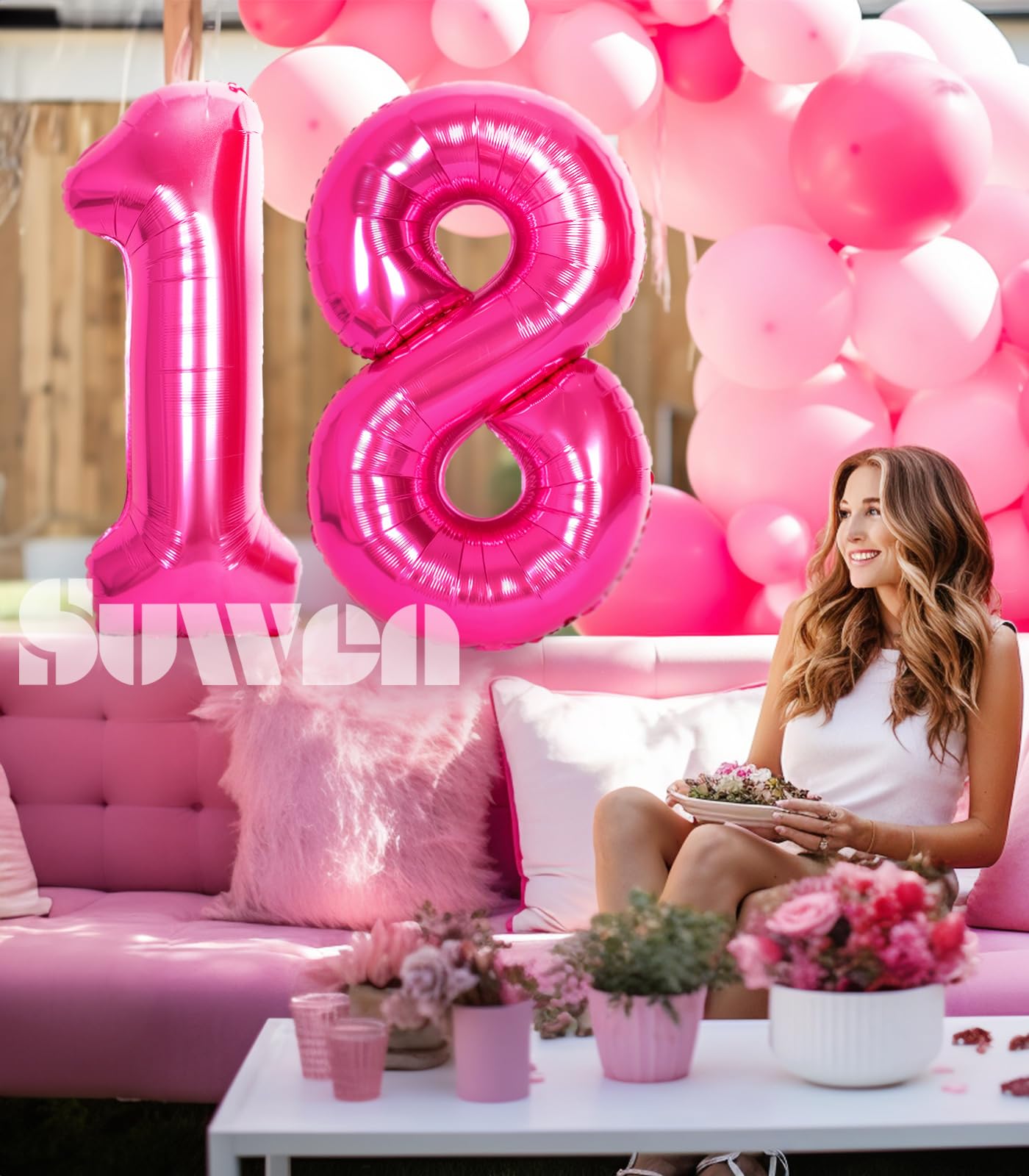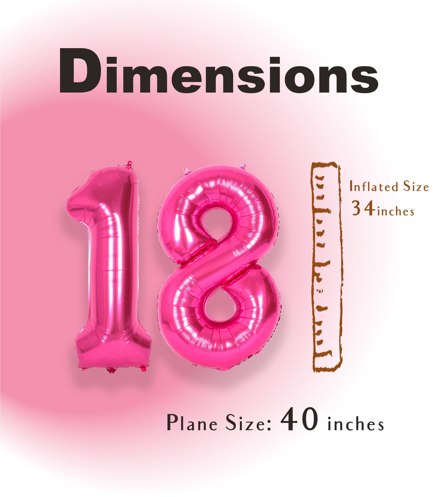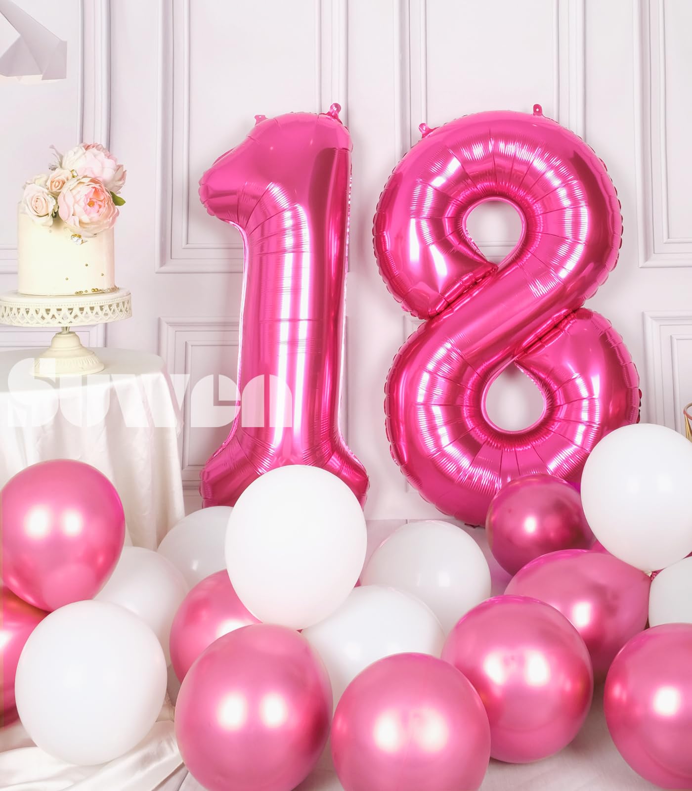 [ Jumbo Sized ] - SUWEN provides 40 inch 0-9 giant hot pink number balloons. This package contains hot pink numbers 18 foil balloon, and an inflatable straw to make inflation and deflation more convenient