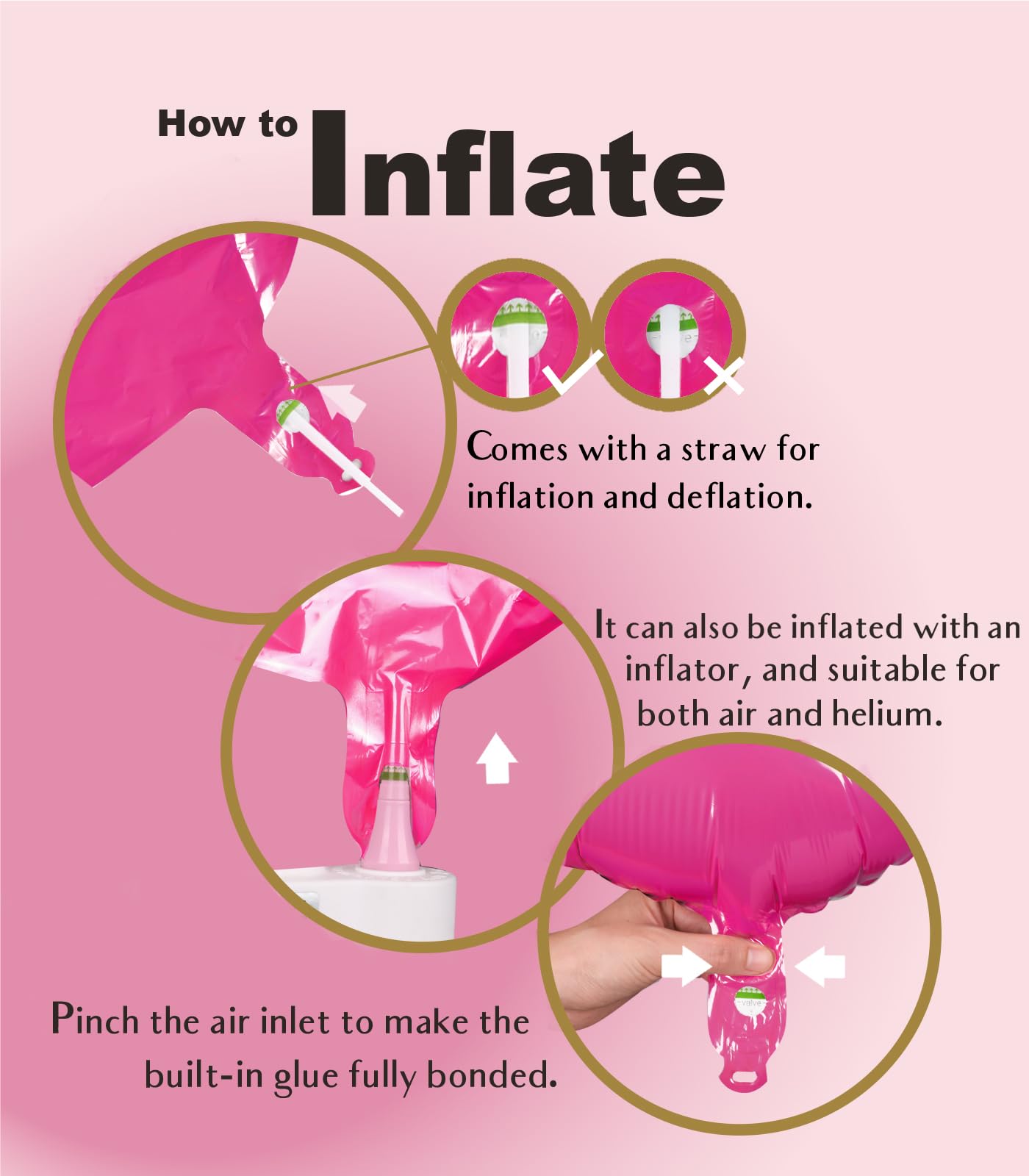 [ Exquisite Detail Design ] - Remember, you only need to fill the balloon slowly with 90% gas to fully inflate the balloon and prevent the balloon from bursting due to over-inflation. After filling the balloon, no need to knot, the air inlet is self-sealing with built-in glue, and it can be completely glued by pinching