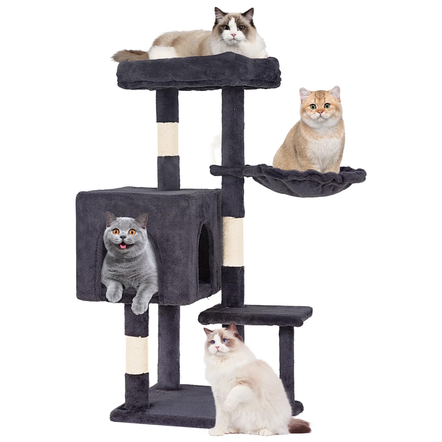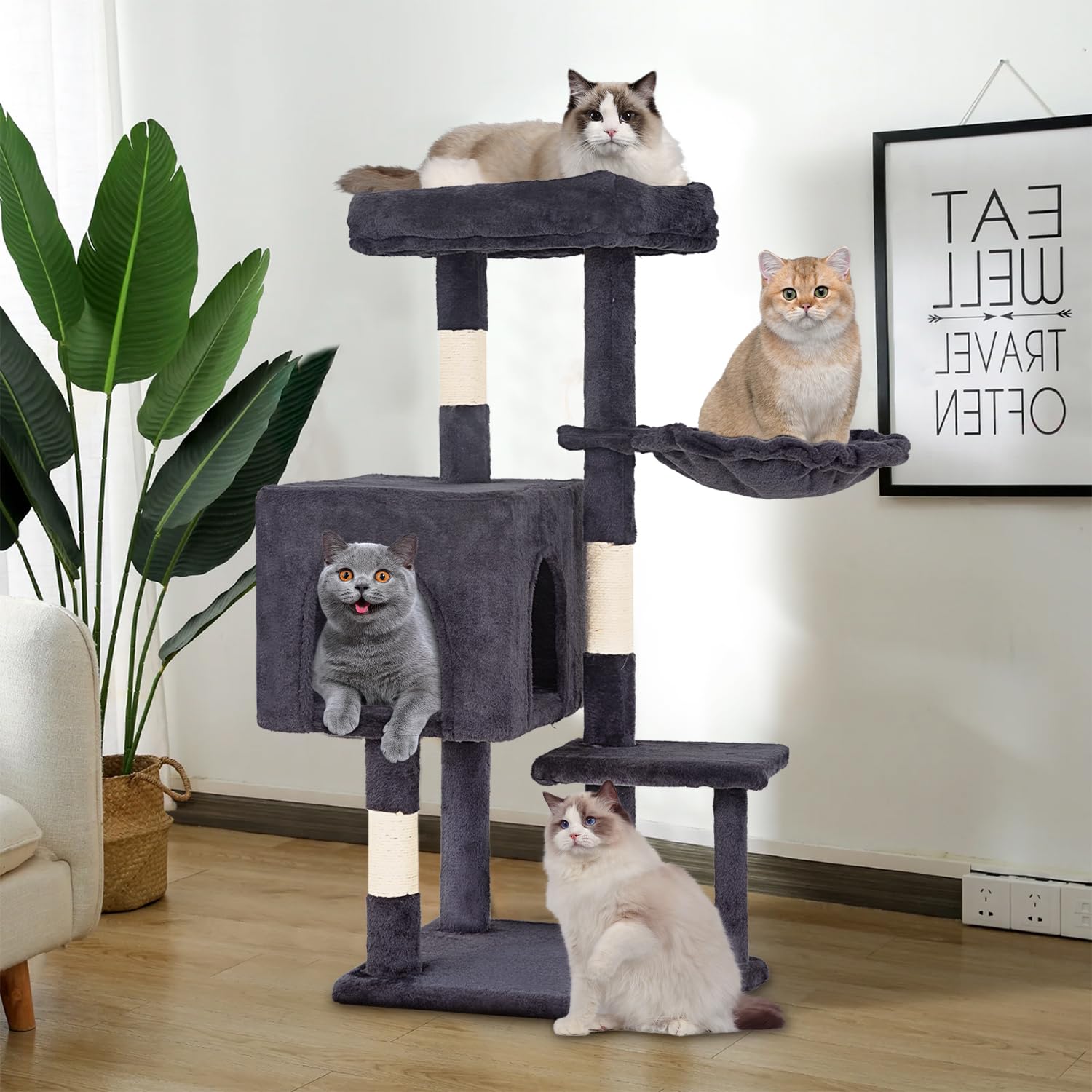 😸【Idea Design for Cats 】Our Cat Tree is designed according the climbing habits of cats. Cats love grinding their claws. Multiple reinforced scratching posts with natural sisal ropes is perfect for your cats to scratch and grind their claws.The scratching board on the cat tree add fun for scratch and protect the furniture suffer from the cats’ claws.