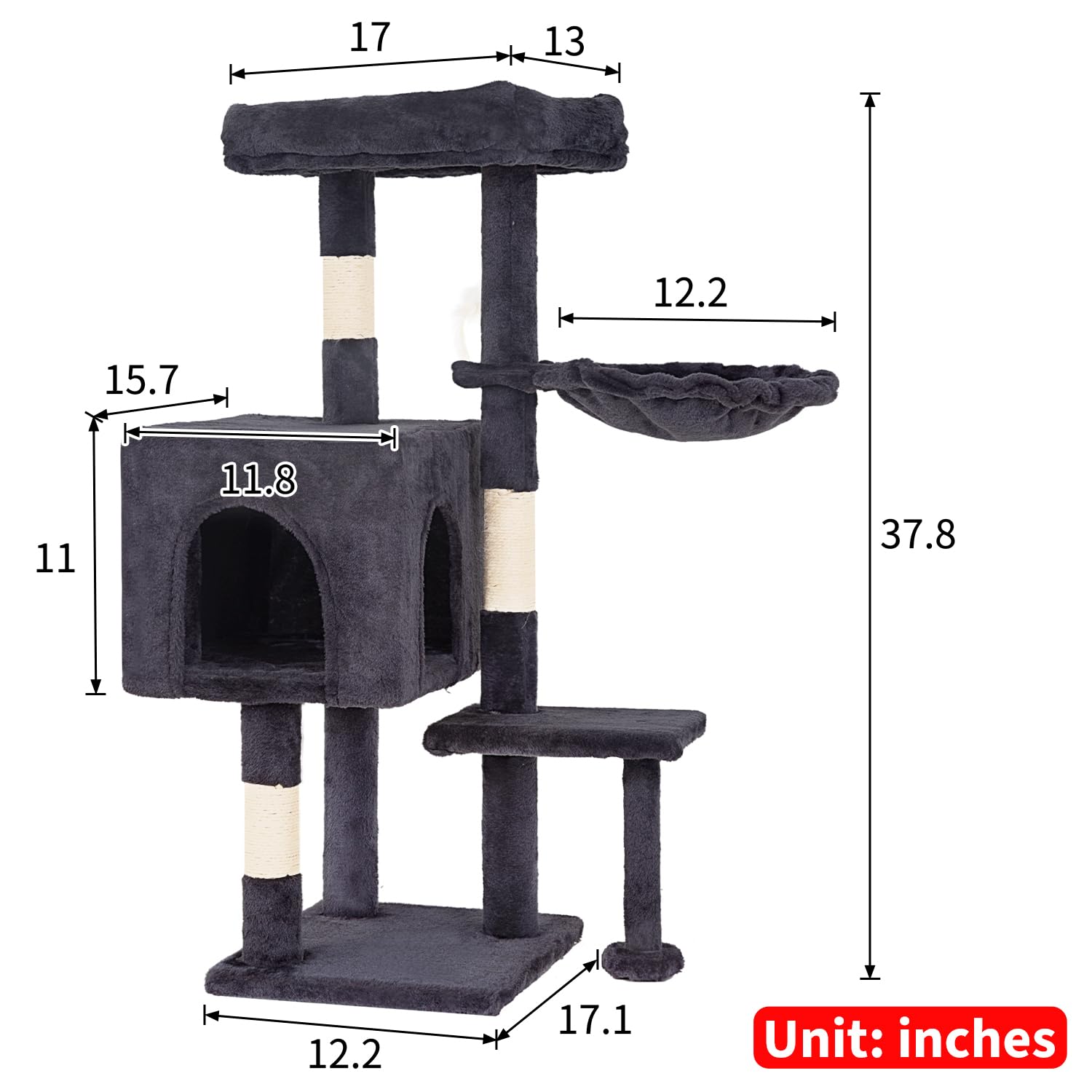 Are you a cat lover? Are you looking for a comfortable space where your kids can relax and play? Our cat tree is your best choice! Your feline friends need a cozy home of their own to take a rest, play around and just be as active as they want, is sure to be their dream-come-true! No need to go out, your cat can also enjoy the same happiness as in the tree!from lounging to leaping to perfecting their expert hunting skills. This cat tree will keep your furry friend entertained, satisfy their natural instincts while keeping up their fitness. Your cats will love their new castle! Specifications: Color: Beige/Dark Gray/Light Gray/Brown/Navy Blue Materials: Plush Material+Particle board +Hemp Rope Size: 27.5*20*37.8 inch Weight: 16 LBS Package Included: 1 x Cat Tree 1 x Assembly Kit 1 x Instructions Kindly Note: - Place the cat tree on a flat floor against wall corner. - Avoid humid environments. - Children are not allowed to climb or play with this product. -Secure the product to the wall with the included anti-tip kit for safe use. - Check the tightness of screws regularly to ensure safe use.