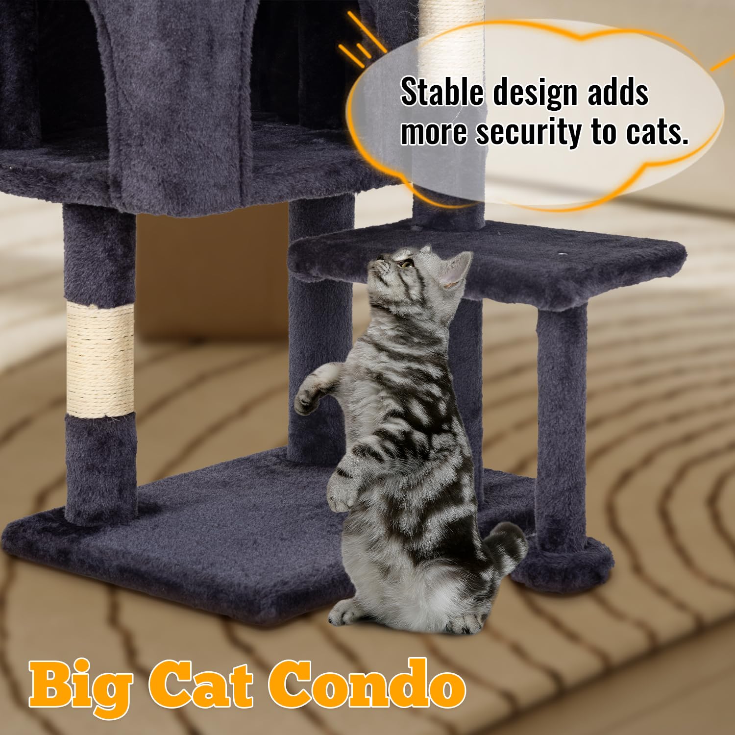 😸【Multifunctional Activity Place】: The cat house provides one top platform,one cozy condo and one deep hanging cradle. Whether your kitten wants to stretch out on a spacious perch, curl up in a plush hole room, or release the urge to scratch on a sisal pole, this multifunctional cat tree tower can make your fur baby's day full of fun and excitement!