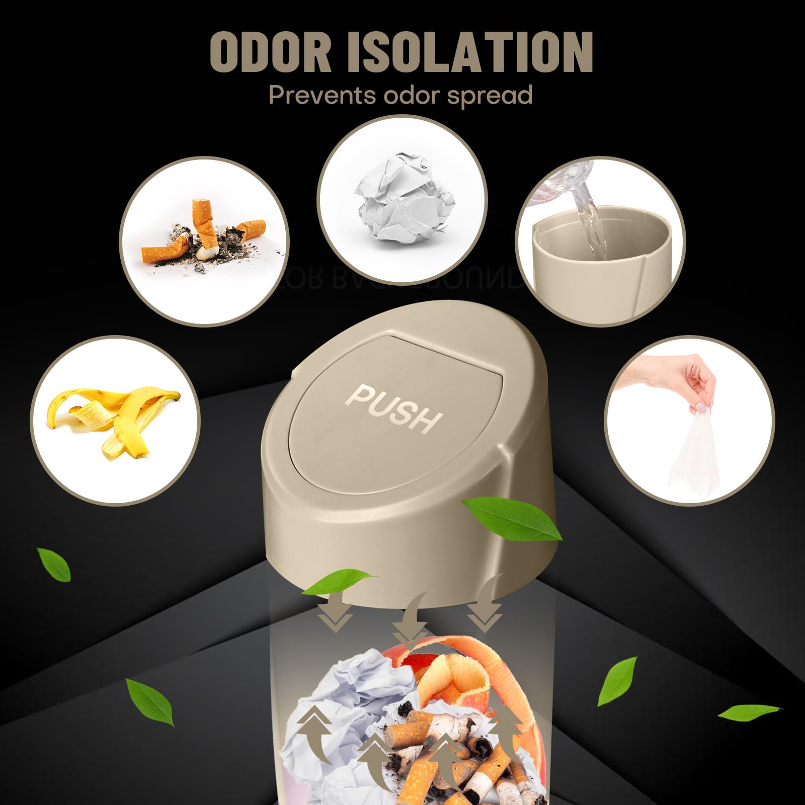 【Convenient and Practical】 The Car Garbage Can is designed with a flip lid, allowing you to easily open it with a light push to dispose of trash or items. The lid closes automatically, effectively blocking odors and keeping your car interior clean and fresh. With 40 disposable trash bags included, it's easy to keep the trash can clean and tidy at all times.