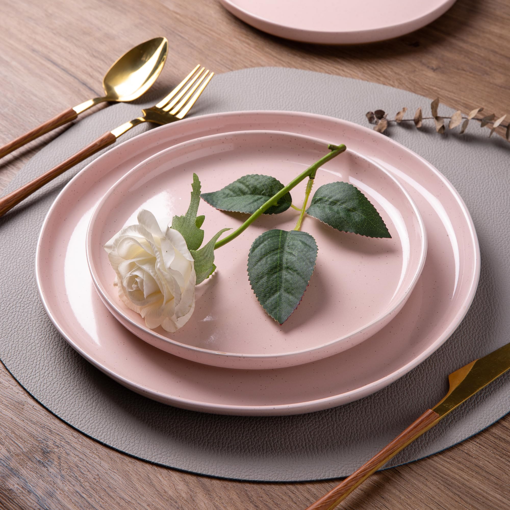 DOUBLE GLAZE AND SCRATCH RESISTANT:Our dishes are fired at 2350℉ for 13 hours making it formimg a sturdy and durable scratch resistant glaze, no need to worry about scratches from your forks or knives.