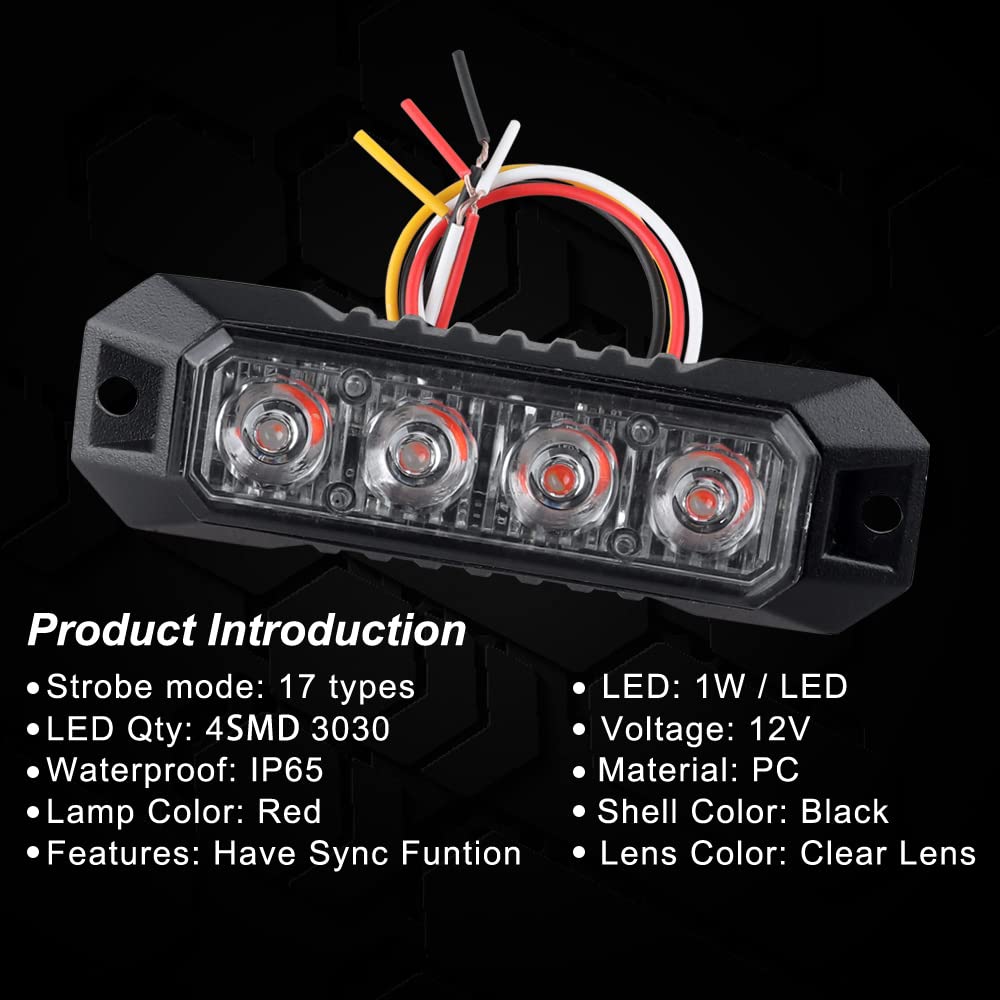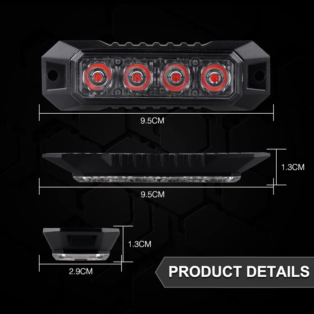 【High-Brightness】Each Unit Strobe Emergency Lights For Vehicles is Buit in 4 Hi-Intensity and High Brightness Red Led Chips, Clear Lens For More Vibrant Colors. Super Visible Even in Daytime.