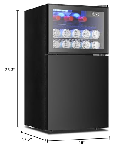 【Separate Wine Cooler Area】 Upper wine cooler and freezer area with 1.3 cuft capacity and temperature range 26℉-46℉, perfect for keeping wine, champagne,beer at its best. The interior of beverage fridge is equipped with two adjustable shelves for easy horizontal and vertical wine placement. The visualized glass door allows you to observe the status of your drinks at all times.