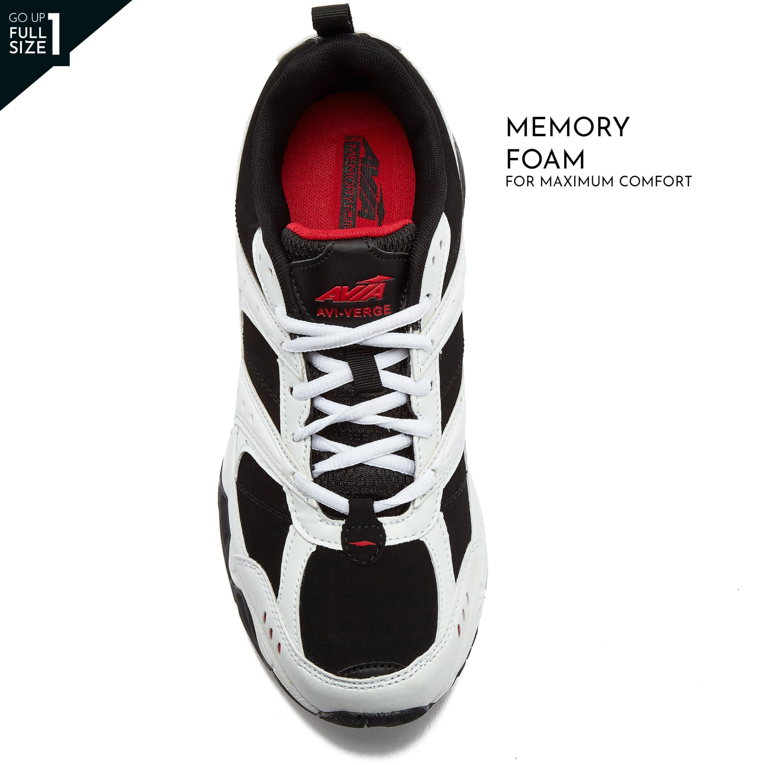 Description Available in classic white and black, the Avia Verges are staple cross training sports shoes for men that serve every sport from outdoor and indoor racquet sports to walking. All sizes come in medium or extra wide 8, 9, 10, 11, 12, 13, and 14. It's the sneaker that goes with you everywhere! Categories: Pickleball shoes men, men's tennis shoes, cross trainer shoes men, mens wide width sneakers.