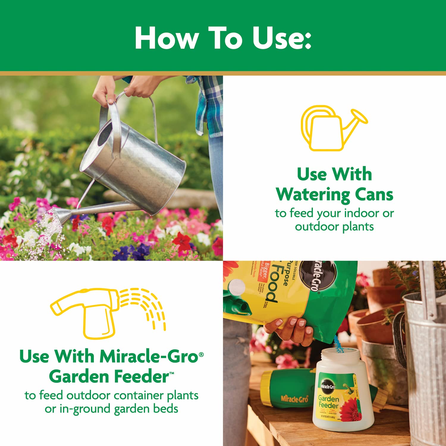 Use with a Miracle-Gro Garden Feeder or any watering can to feed up to 2,000 sq. ft. to feed while you’re watering your plants