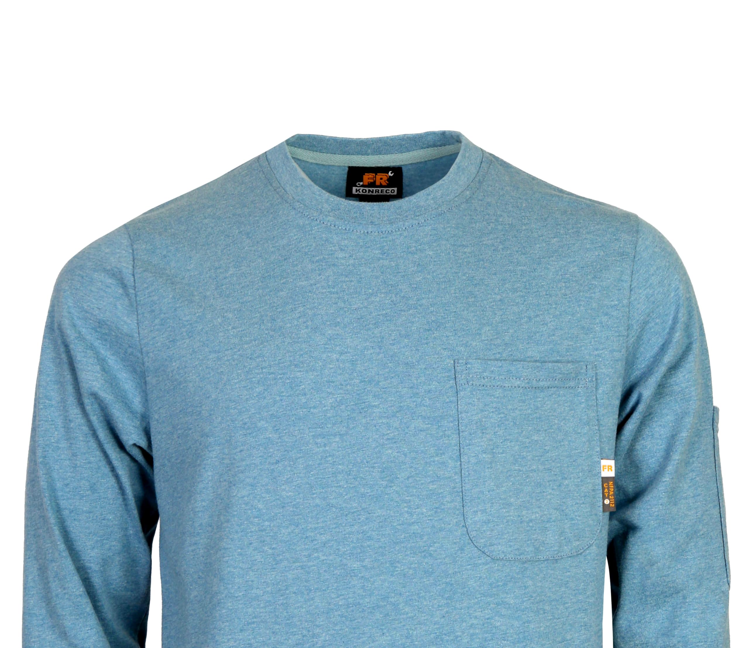 [Applied Design]Preshrunk & Pre-washed,Machine Washable.Classic crew neck style with one chest pocket and one sleeve pocket for your convenient storage of small stuffs.Rib-Kint collar and cuffs.Our FR shirt provides you a more comfortable dressing experience.