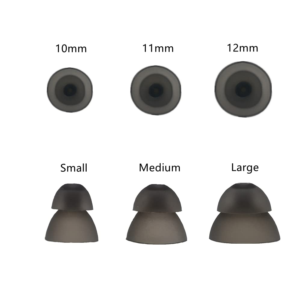Assorted sizes: Available in small (10mm) ,medium (11mm) and large size(12mm) . A correct size dome will conform to form a good, secure seal and get your best hearing. If you are not sure which size suits your ear canal, we’d recommend the mixed set with 6 domes containing three different sizes for trial.