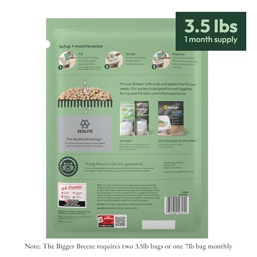 Breeze Litter Pellets: Unscented cat Zeolite litter pellets allow urine to pass through and dehydrates and leaves solid waste on the top for powerful odor control and easy scooping.