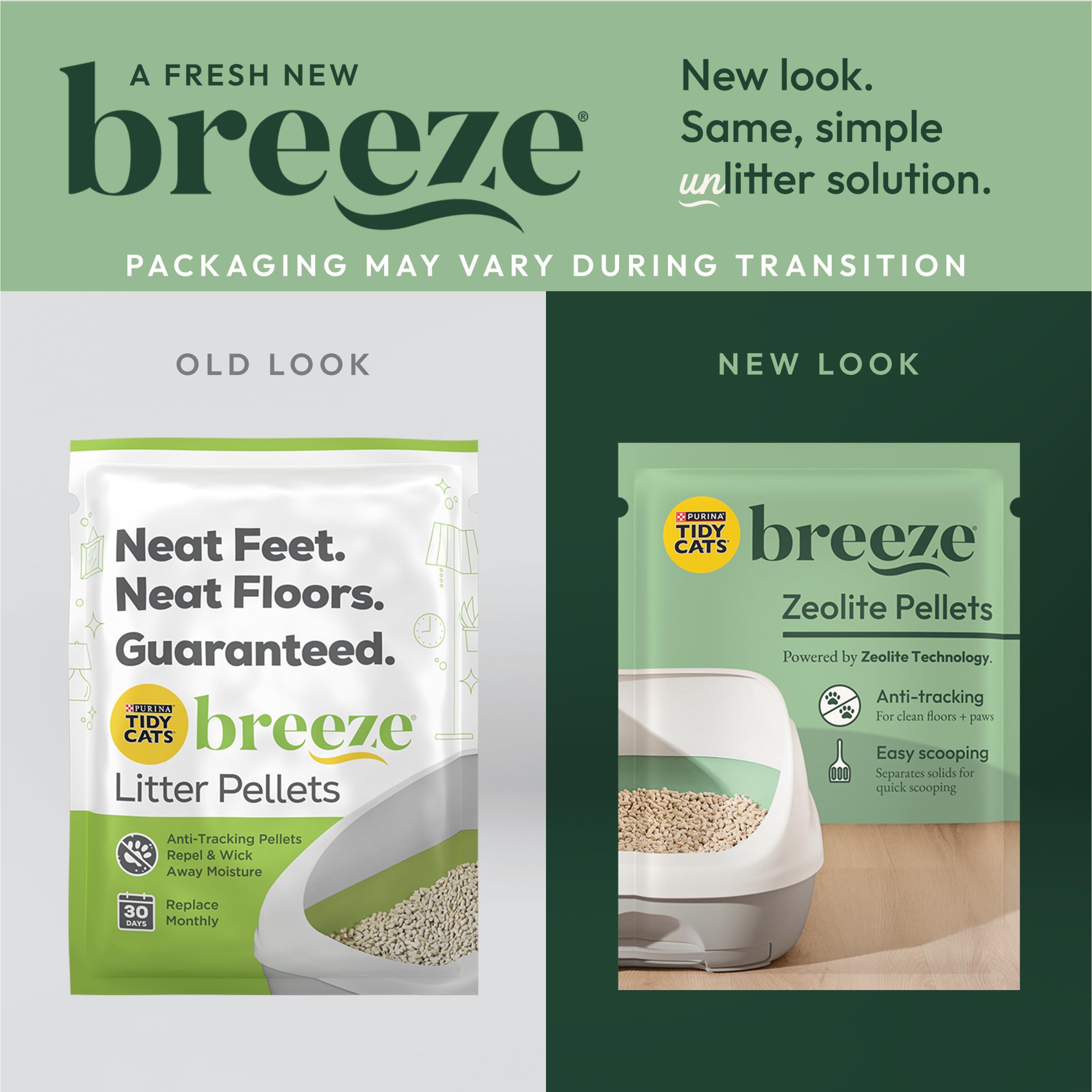 Control odor and make cleaning up your cat's litter box hassle-free with this Purina Tidy Cats Breeze cat litter Unscented Cat Litter Pellets Refill. Designed to work with the Tidy Cats Breeze litter system (sold separately), these litter pellets for Breeze system are made of Zeolite from a proprietary formula with excellent dehydrating properties for amazing odor control. The Zeolite pellets allow urine to pass through to be absorbed by the Breeze Ion pad, leaving solid waste on top for easier scooping. The non clumping cat litter pellets dehydrate solid waste for better odor control and are 99.9 percent dust free for a clean and tidy litter box area. Ideal for multi-cat families, these multi cat litter pellets combined with the Breeze litter box and Ion pad simplifies litter maintenance for easy cleaning and less mess. The innovative pellets last up to 30 days (when used as directed) for a budget-friendly litter alternative with powerful odor control. Check litter box maintenance off your to-do list with these cat litter pellets and the Breeze Litter Box system.