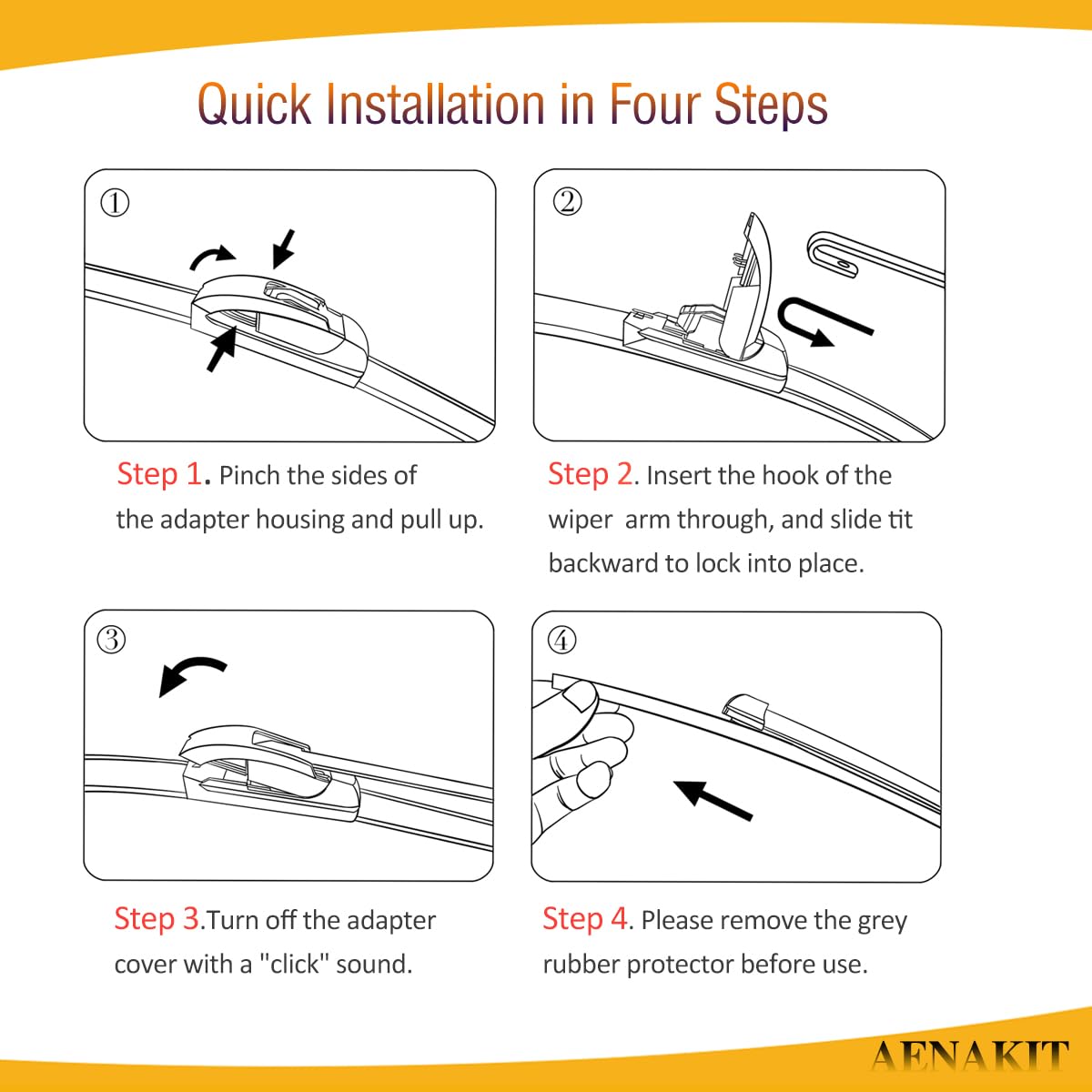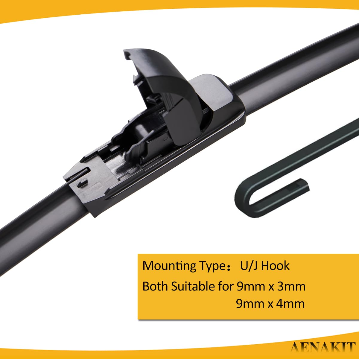 Easy to Install:This wiper adopts U/J-hook,both suitable for (9 x3mm & 9x4mm) wiper arms. and there is a detailed installation guide on the package, and you can easily replace the wiper blades in just four steps.