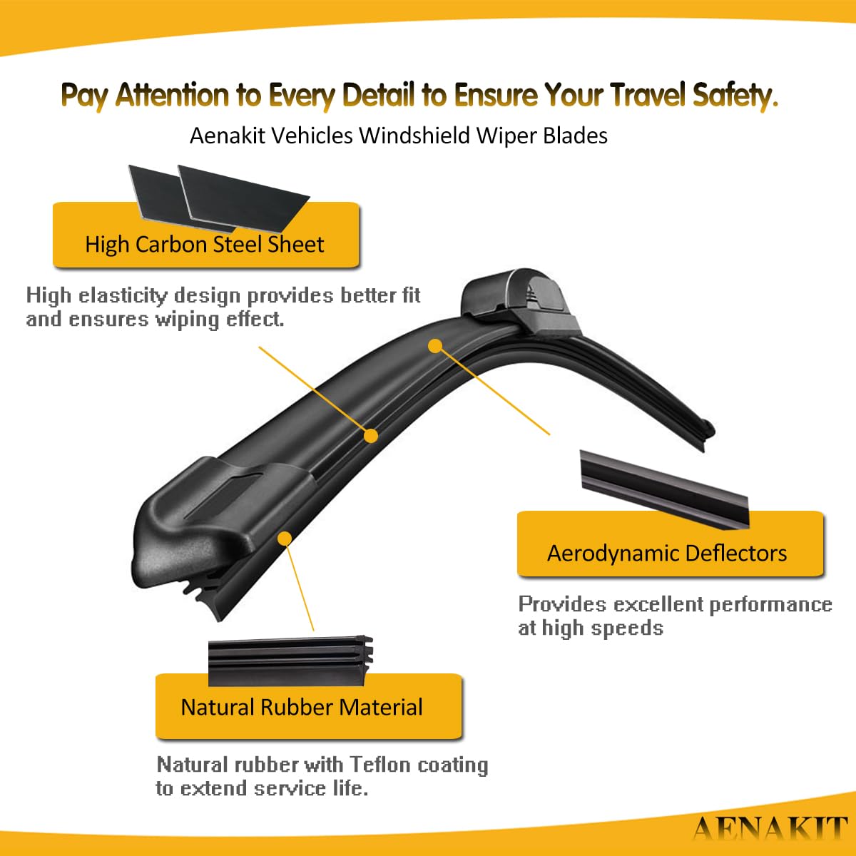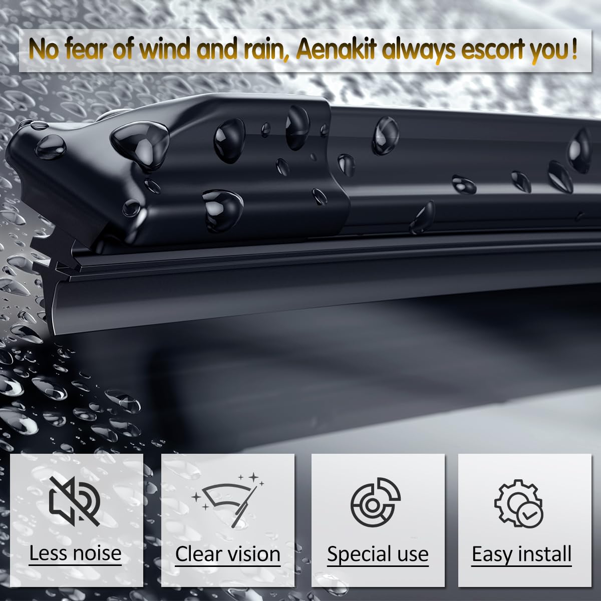 Ultra-Quiet Design:Using pressure equalization and aerodynamic technology, after our test, it can reduce more than 30% noise compared with ordinary wipers,make sure giving you a quiet and comfortable driving experience.