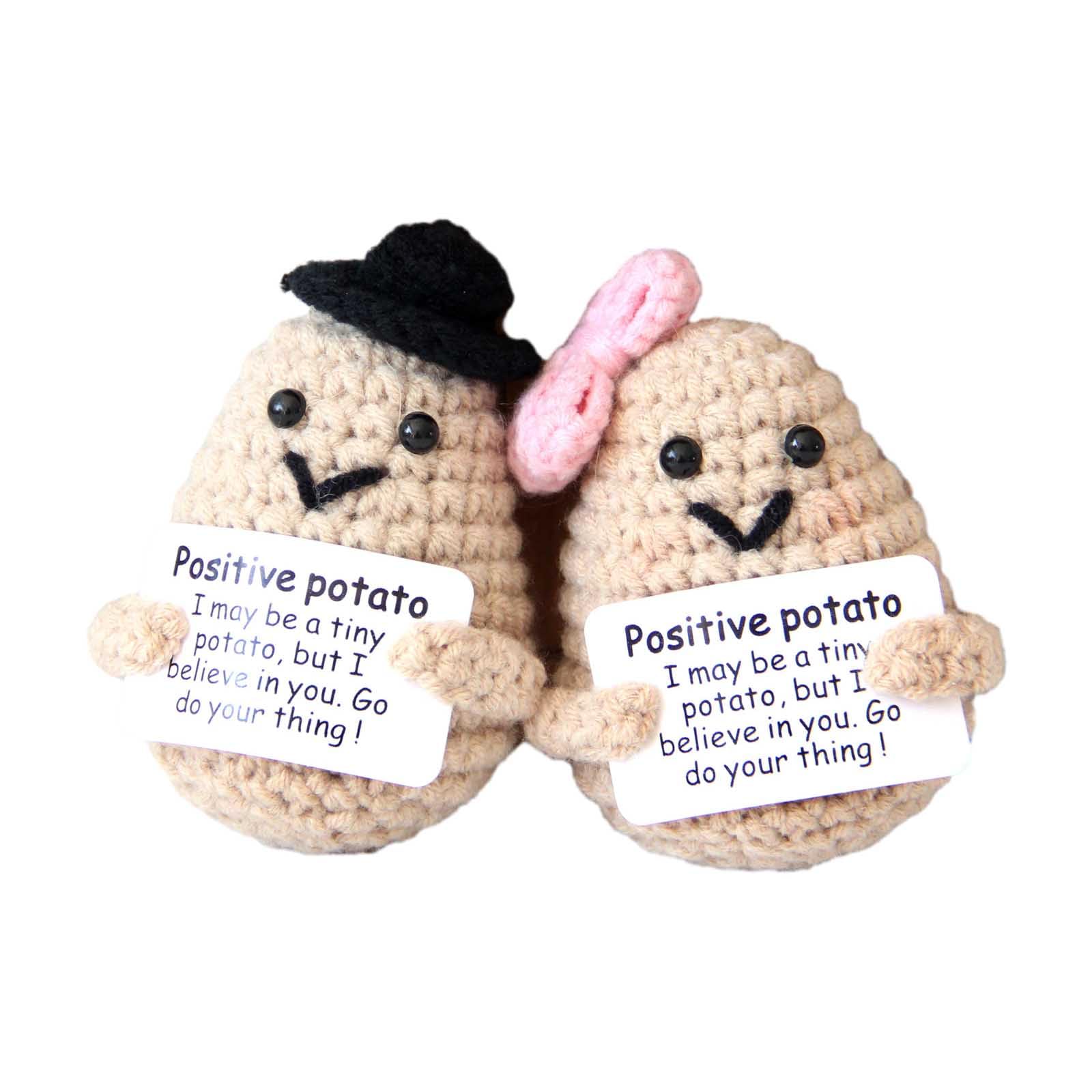 Package include: you will receive 2 pieces of the funny knitted potatoes, These potatoes are designed to hold a positive message card and can be applied as encouragement and emotional support for friends or family