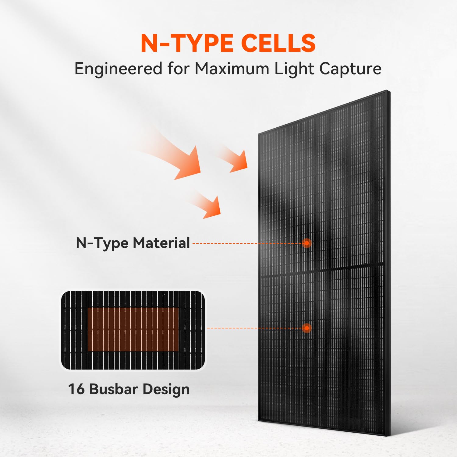 【High Performance】 Engineered with advanced N-Type cells for low LID and stable output in heat, clouds, or early mornings