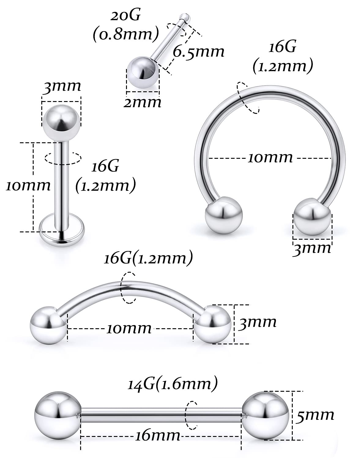 [SUITABLE FOR USE]: These Body Jewelry Piercing Kit Tools Can Be Used For Belly Button Rings, Tongue Rings, Septum Rings, Nose Rings Piercing, Lip Rings, Eyebrow Rings, Ear Piercing, Cartilage Tragus Helix Rook Conch Daith Earrings Piercing Jewelry