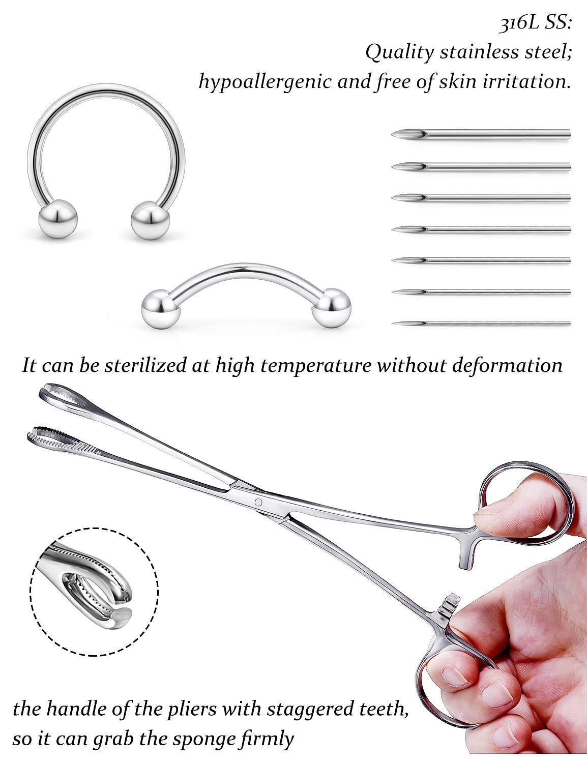 [ITEM CONTAIN]: You Will Receive 1 Pieces Forceps Piercing Clamps Piercing Tools with 14 Pieces Piercing Needles and 10 Pieces Piercing Jewelry, All Of Them Are Beautiful And Elegant, Multiple Choices For Meeting Your Various Needs.