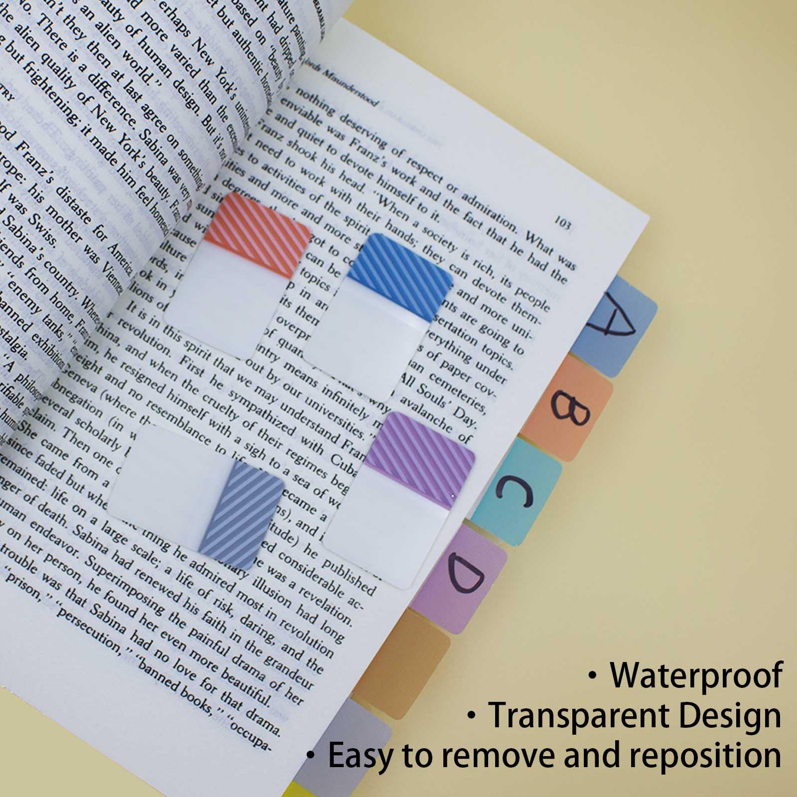 Safety Material: the page tabs made of BOPP material and special adhesive, non-toxic, no odor, smooth writing; self adhesive part is transparent