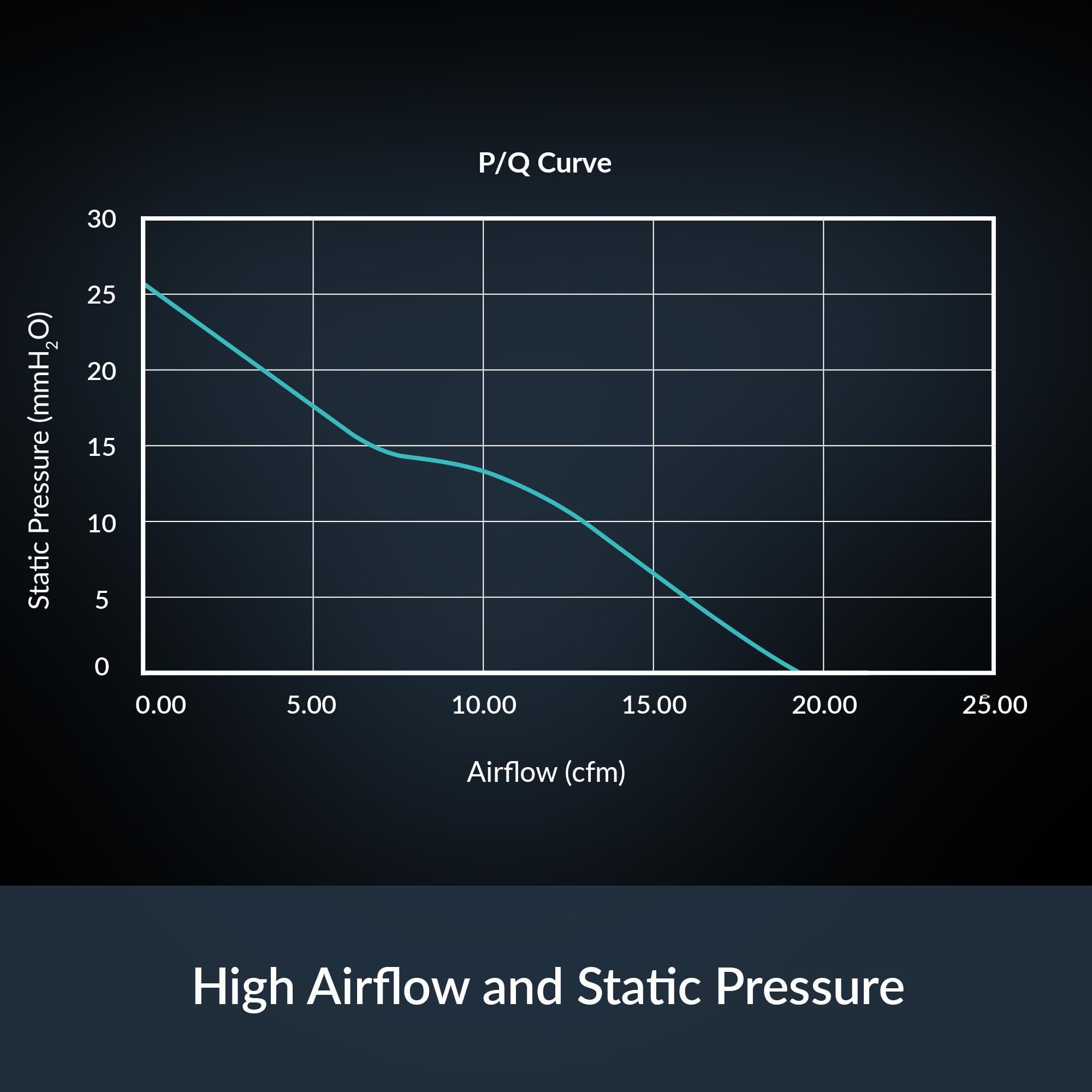 The S4028-15K has a particularly wide speed range that can be regulated via PWM and voltage. With its 15000 max RPM it is one of the strongest 12 V fans with a 40 mm diameter