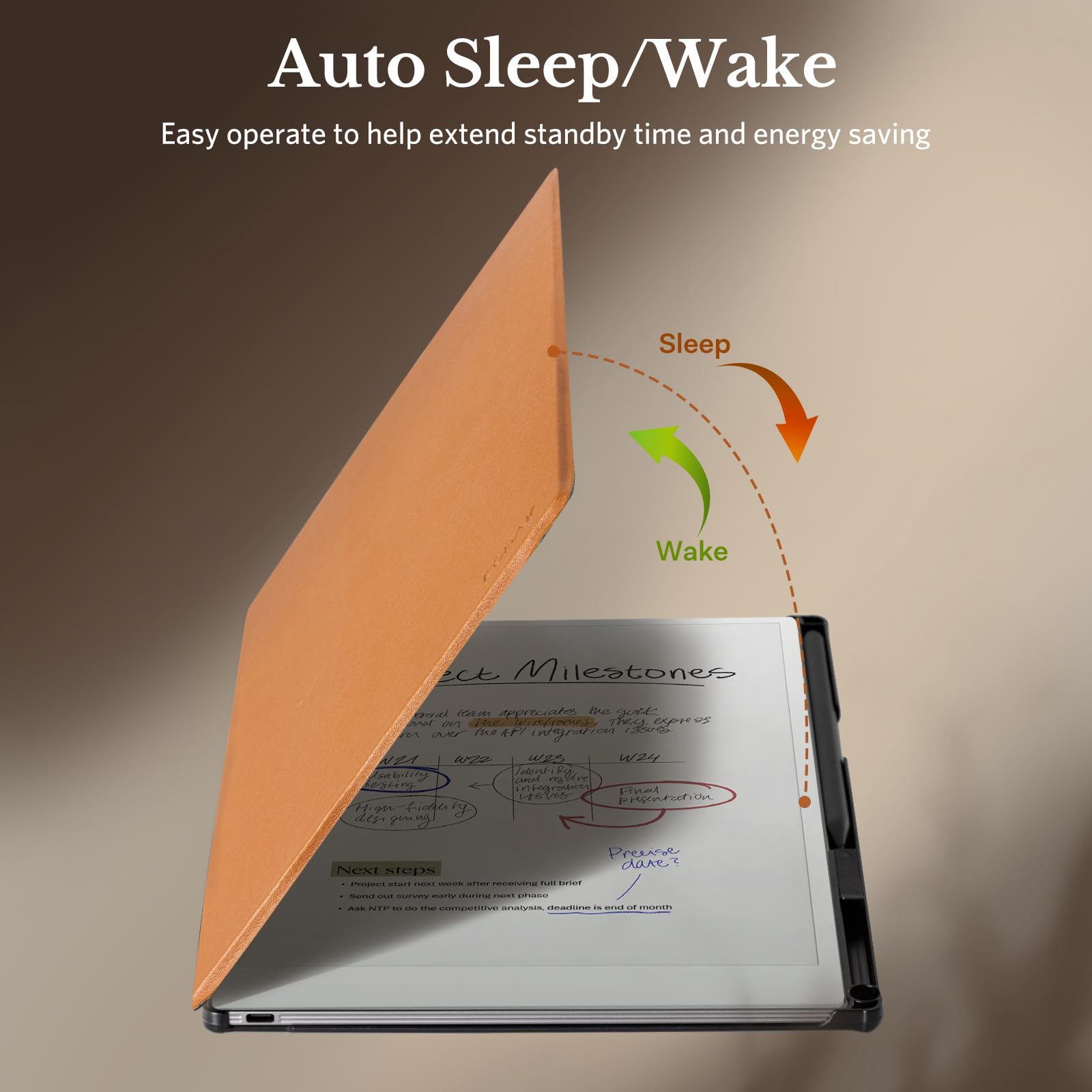 Auto Sleep/Wake Functionality: The magnetic folio activates your device when opened and puts it to sleep when closed, optimizing battery life for extended standby time