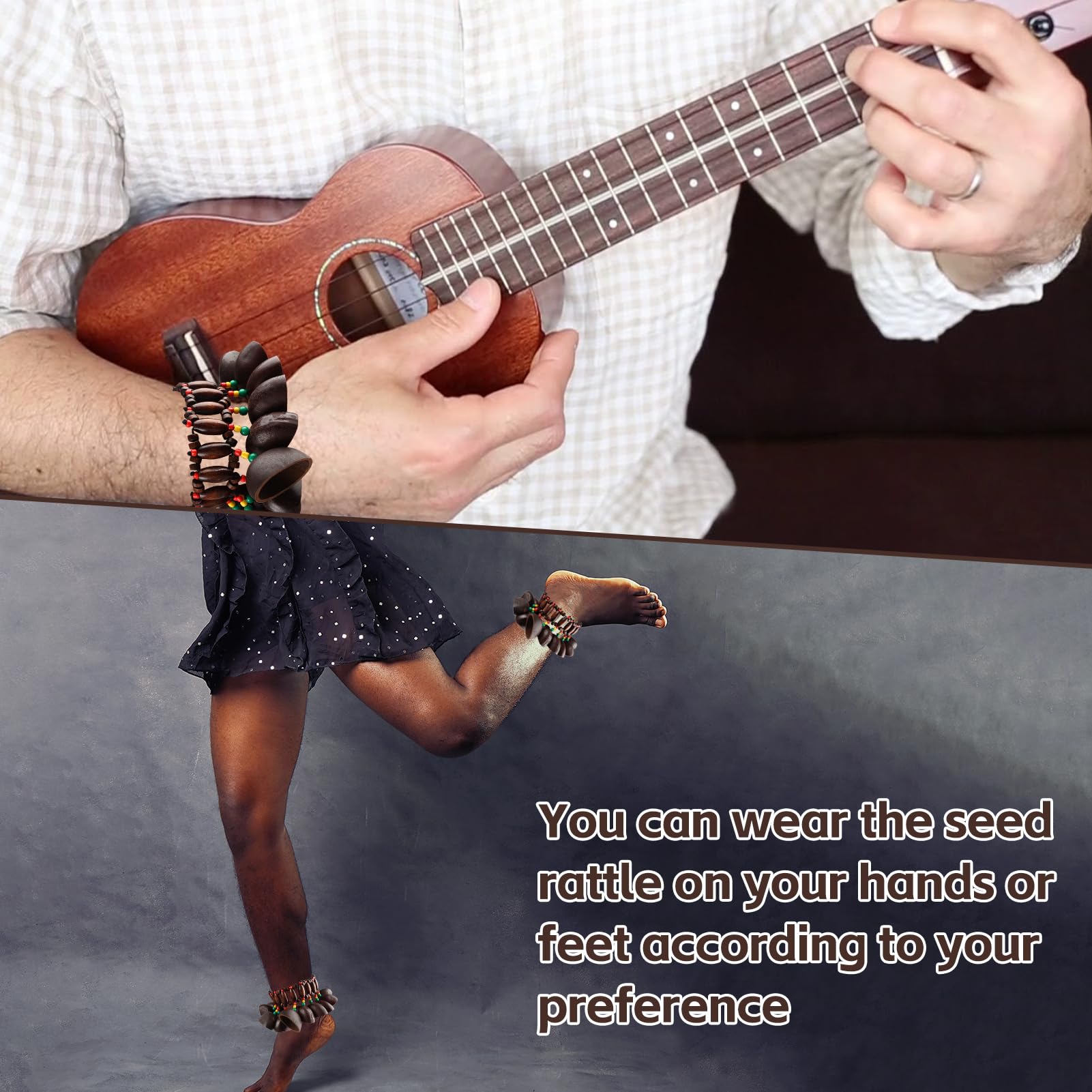 Cacho Seed Rattle Bracelet Anklet, 2 PCS African Shaker Nut Shell Bracelet Natural Percussion Accessories Musical Instrument(Brown)