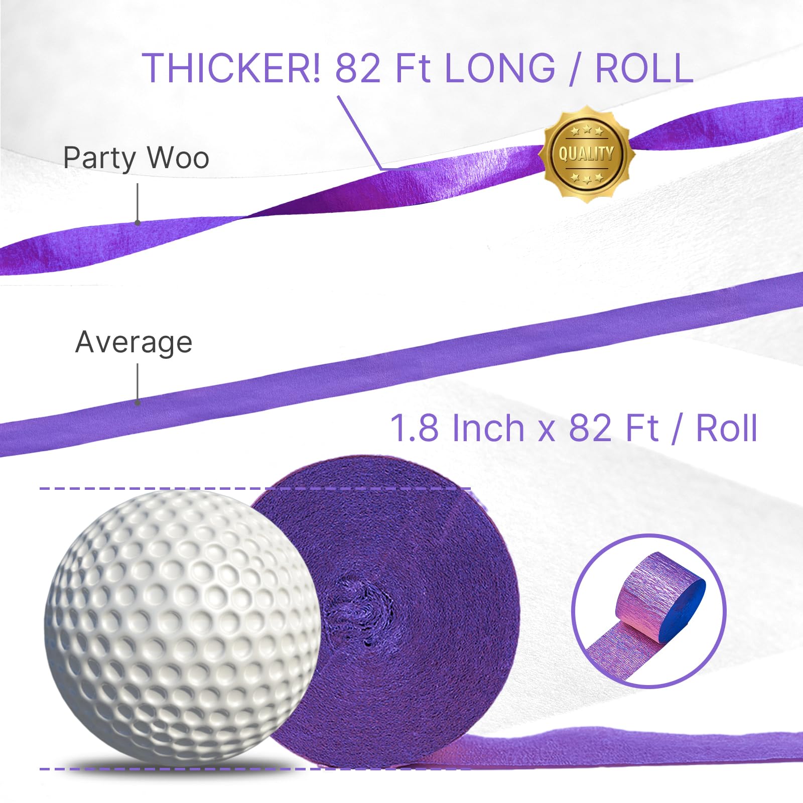 Package Included:You will receive 4 precisely rolled party crepe paper in metallic gold and dark purple colors, each roll is 1.8 inch x 82 ft, these crepe paper streamer rolls are enough for your baby shower, wedding and engagement decoration needs
