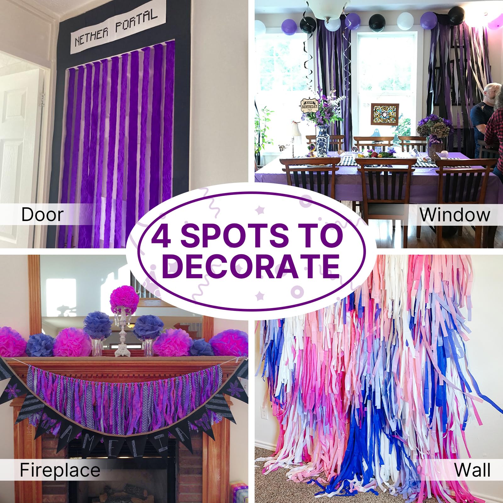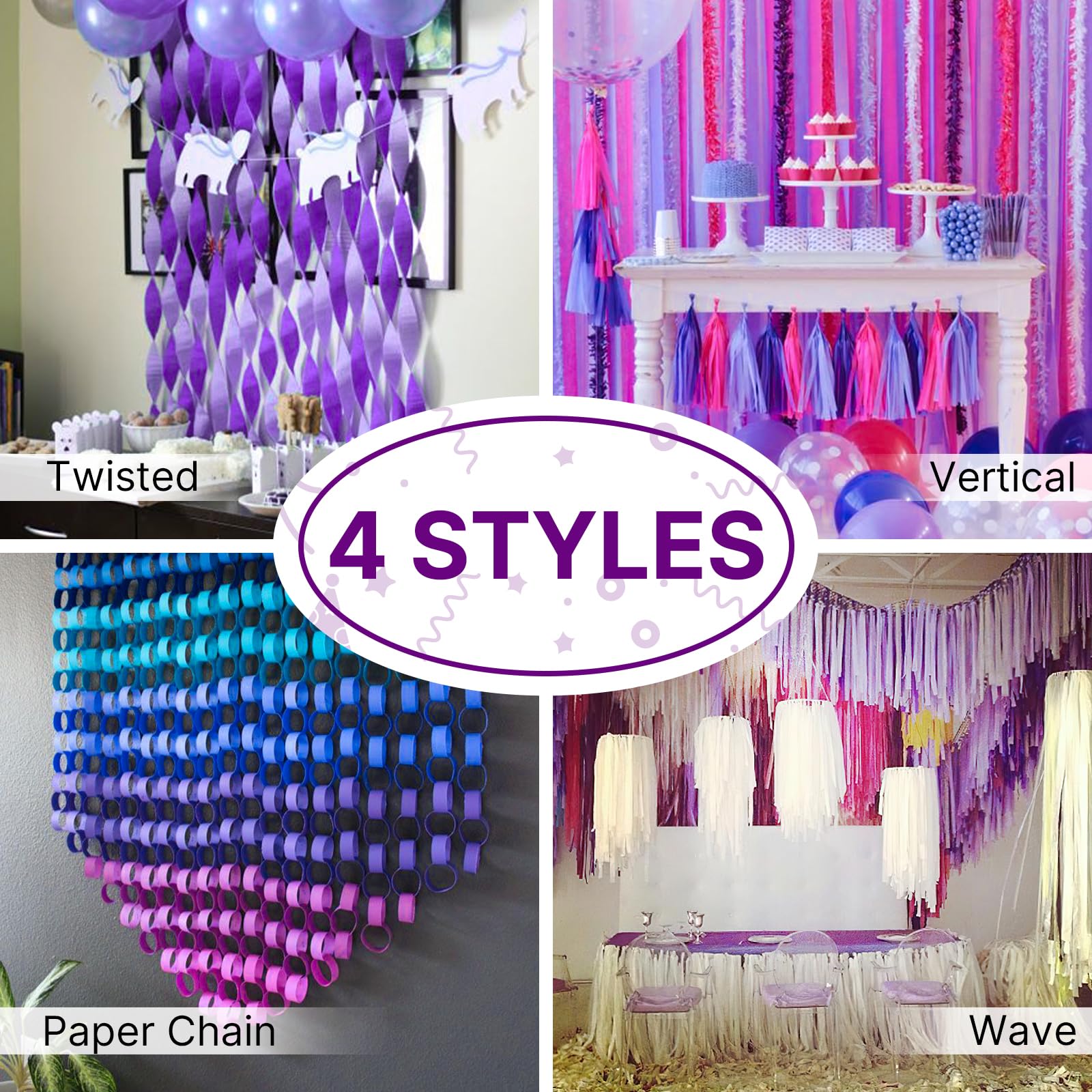 Easy to Decorate:These purple and gold crepe paper streamers are easy to untie.You can twist paper streamers together into spirals, Use the crepe paper roll for backdrop, match different colors to give your baby shower or bachelorette a customized look