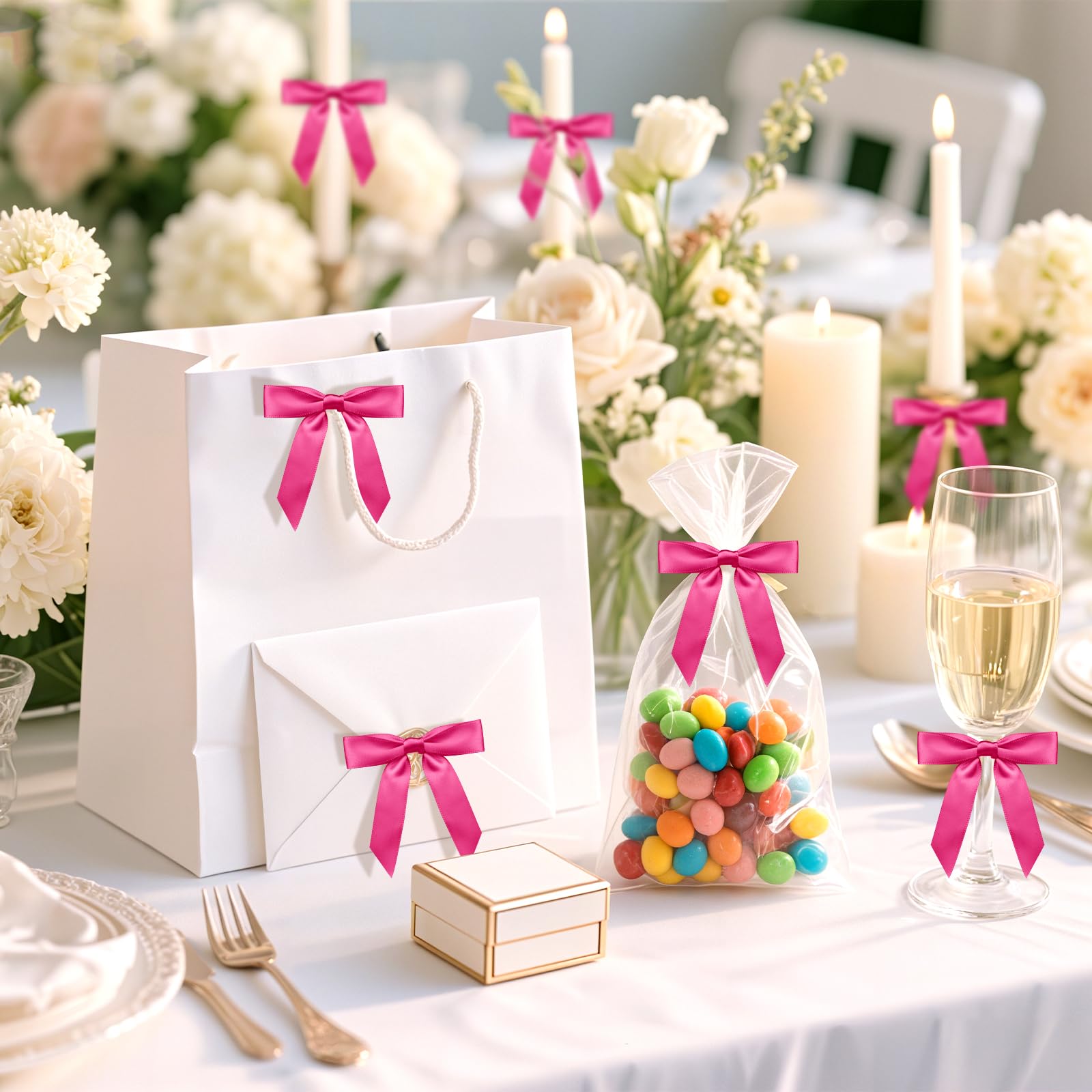Elevate your gift-giving and crafting experience with our exquisite Satin Ribbon Bows. These 2-inch self-adhesive satin bows come in a convenient pack of 50, making them perfect for a variety of occasions. Crafted from high-quality satin, these pre-made bows feature a luxurious sheen that adds an elegant touch to any gift or decoration.With their charming design, these bows for gift wrapping are not just functional but also a delightful addition to your crafting toolkit. Perfect for DIY projects, event decorations, and more, these satin ribbon bows will surely impress your guests and loved ones. [ Bow Size ] Each satin ribbon self adhesive bow is 2" in width with 1" double-sided tape [ Features ] perfect for your holiday crafts, treat bags, gift basket, gift packing, events outdoors decor, farmhouse decor,Christmas tree topper, wreath,wedding, reception, or themed birthday party [ Notice ] All picture were taken by real item, not color adjustment; But color may be a little different from the picture shown because of display resolution, light or other reasons.