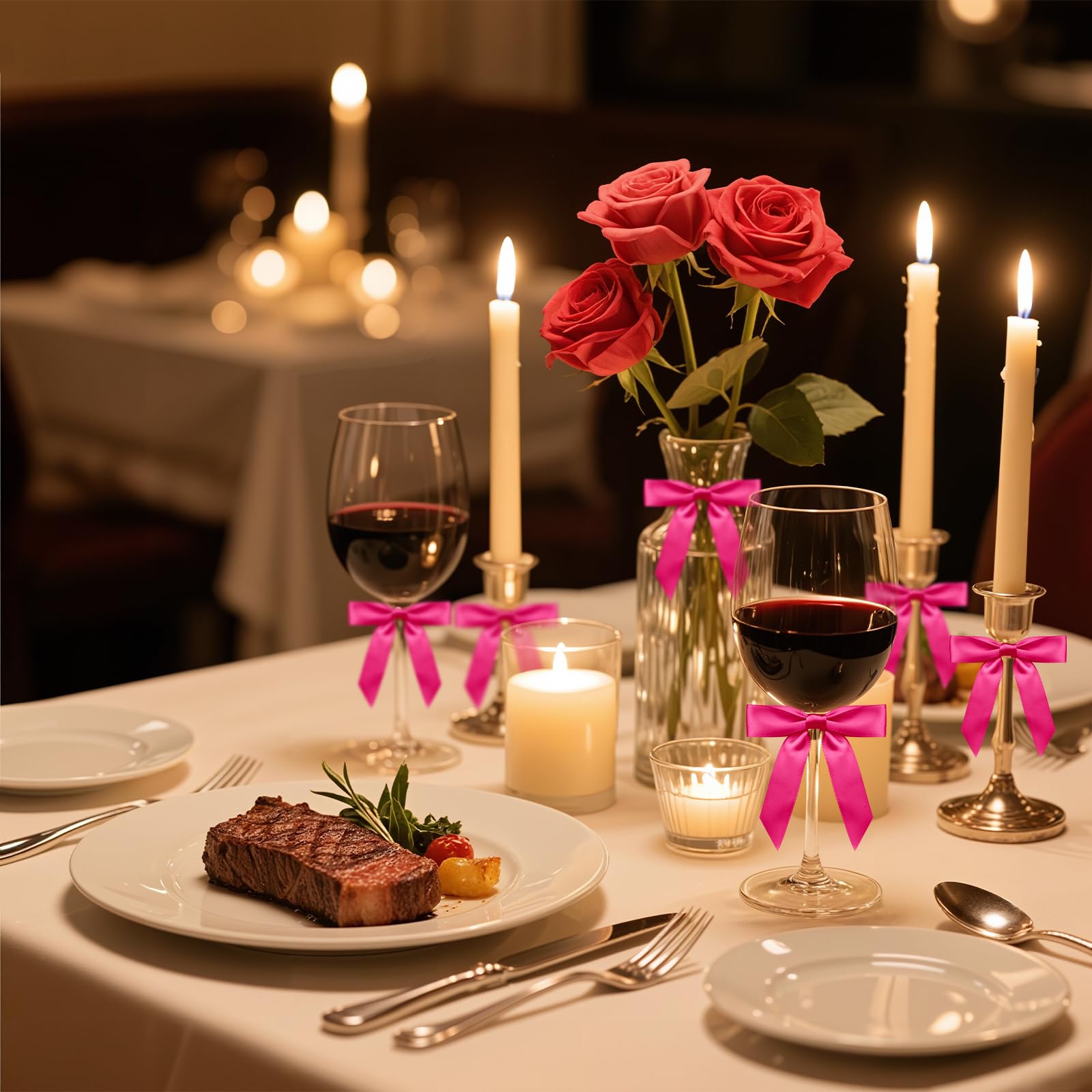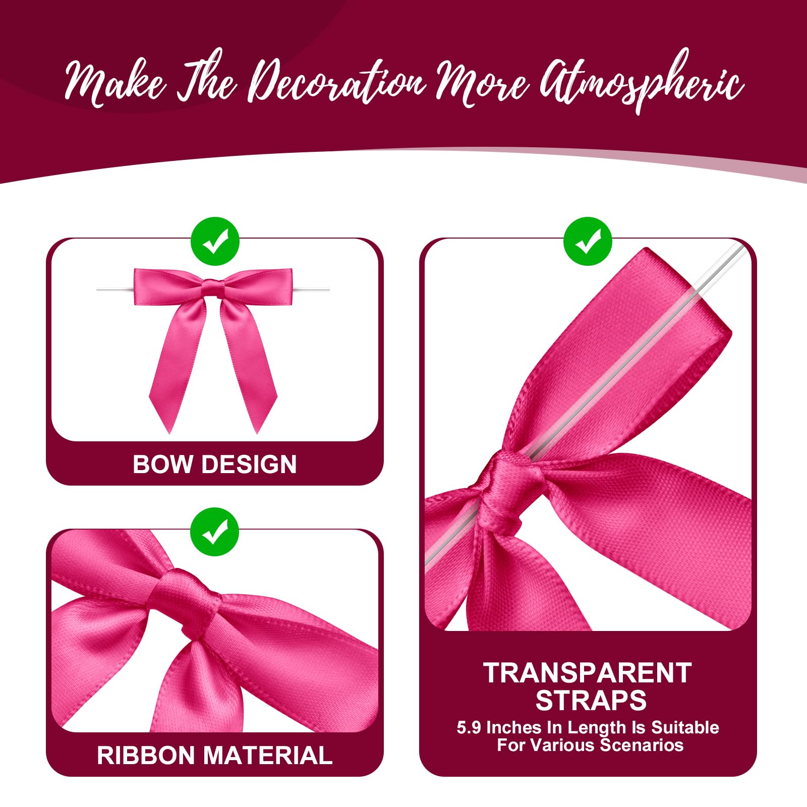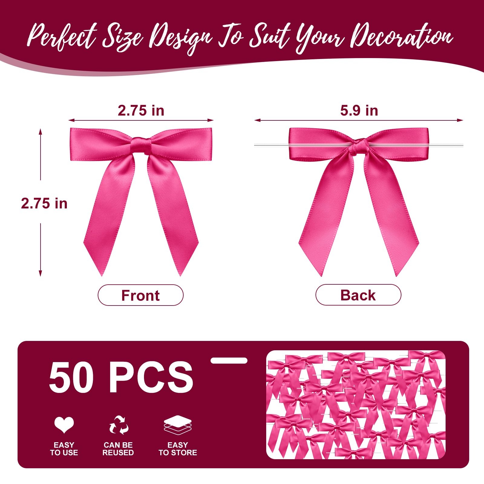 【 Package Content 】 You will receive 50 pieces Plum Red satin bows with twist ties. Saving time from having to make the bows yourself.
