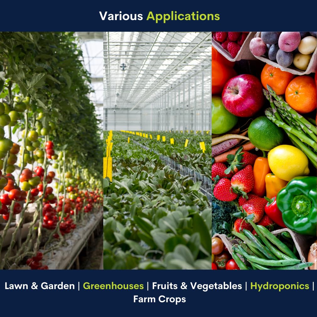 100% WATER SOLUBLE & EASY TO APPLY: Our premium Calcium Nitrate prills dissolve quickly and completely in water, ensuring hassle-free application without clogging sprayers or irrigation lines. Perfect for various feeding methods: use as a fast-acting foliar spray for direct nutrient absorption, mix into fertigation systems, apply as a soil drench or side-dressing, or use as a crucial calcium source in hydroponic and aquaponic setups.