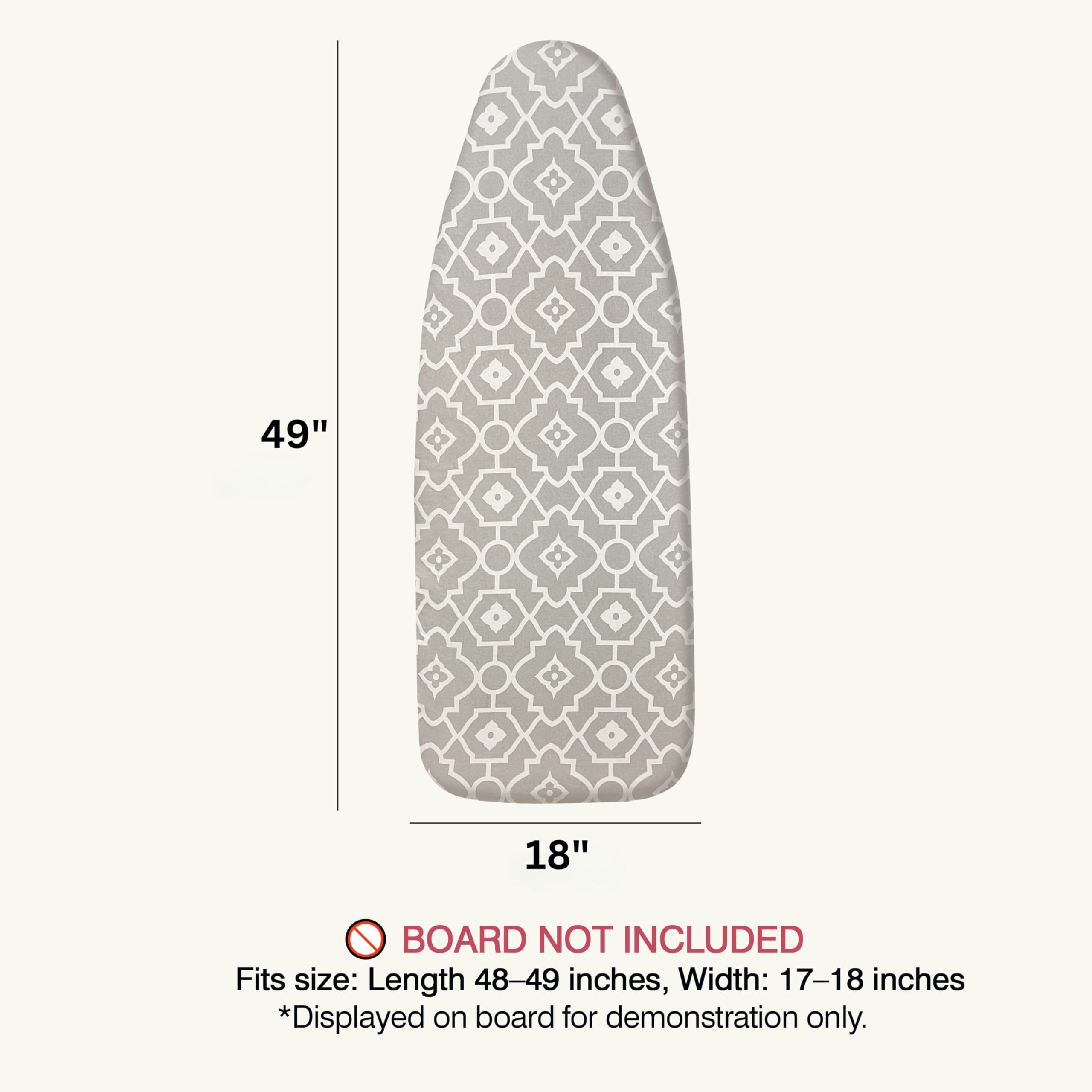 SIZE INFORMATION:This ironing board cover and pad fits wide and large ironing boards (17"-18" wide, 48"-49" long). Please measure your ironing board size before ordering.important:the cover is not suitable for over-the-door ironing board