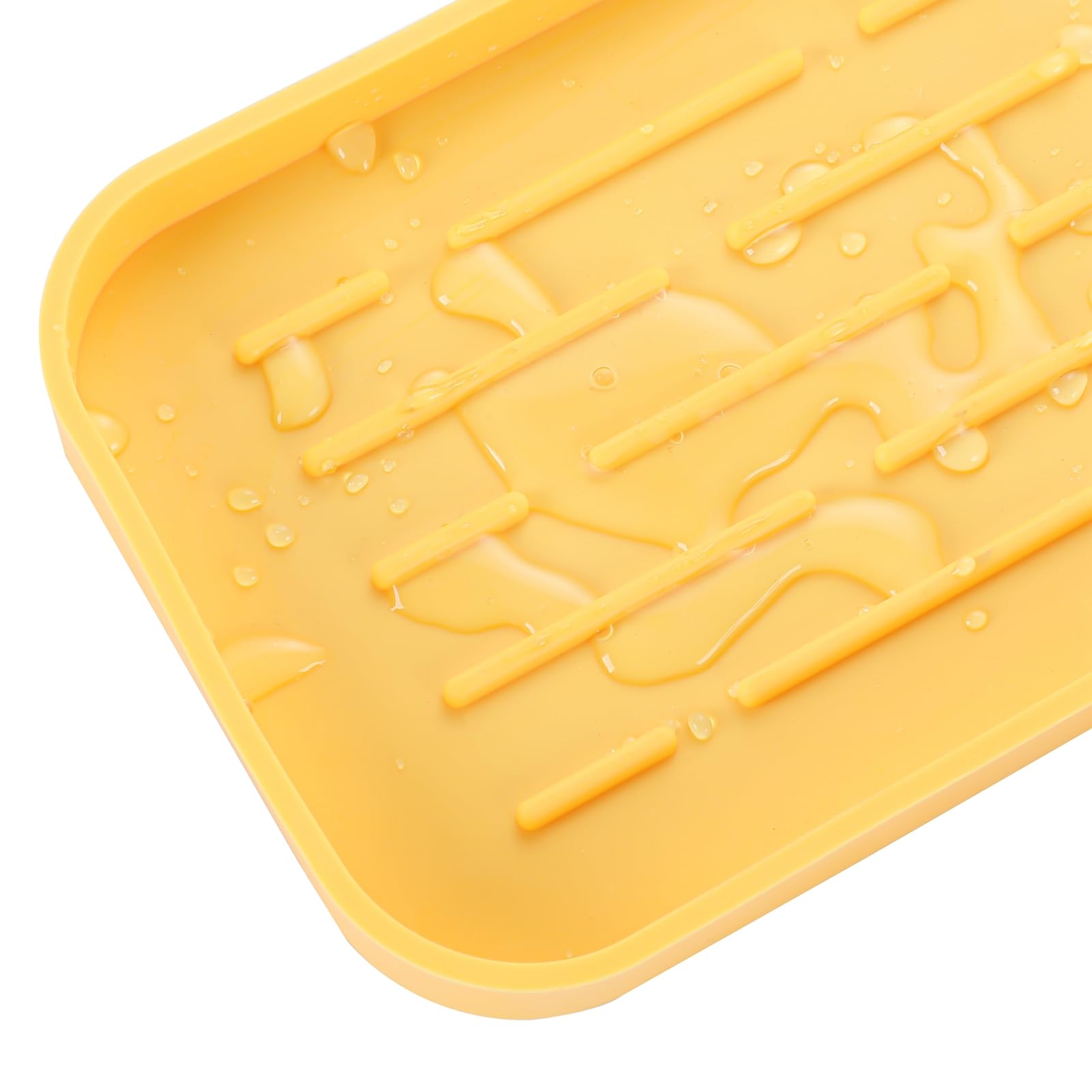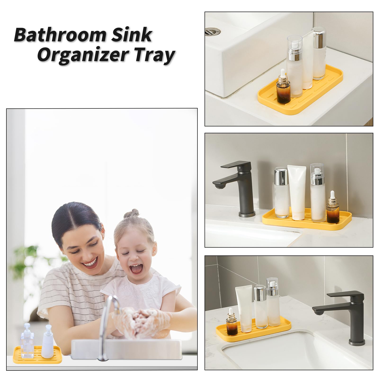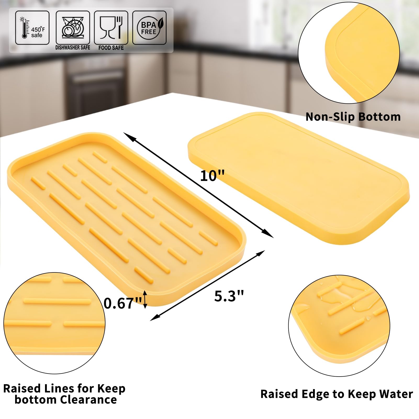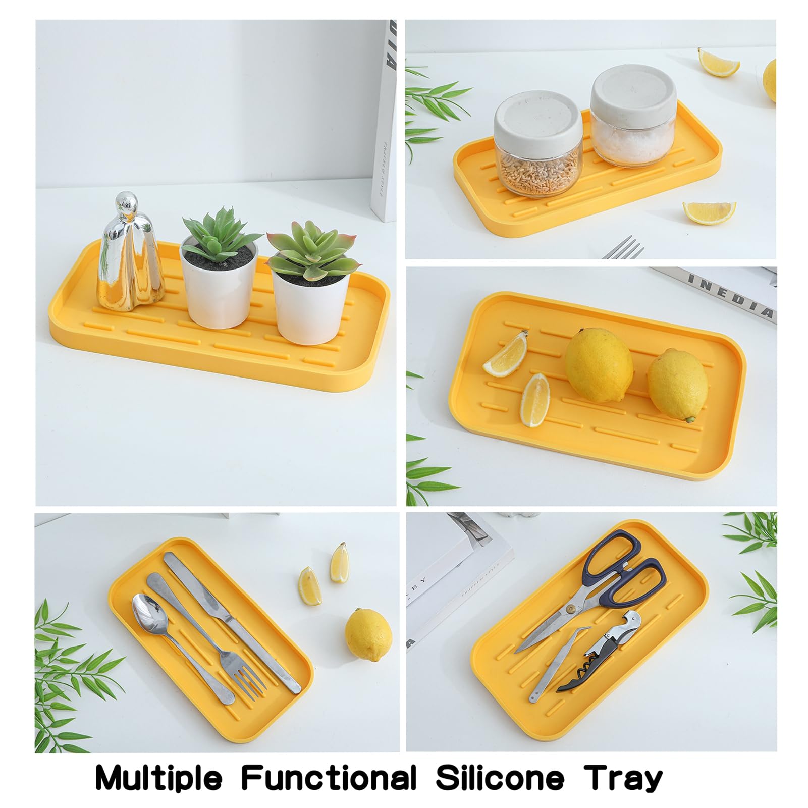 RAISED EDGE & NON-SLIP BOTTOM:The non-slip bottom design can make the silicone organizer tray stable on the sink or countertop.The 0.67-inch high raised edge keeps water or other dirt overflow to keep your counter clean