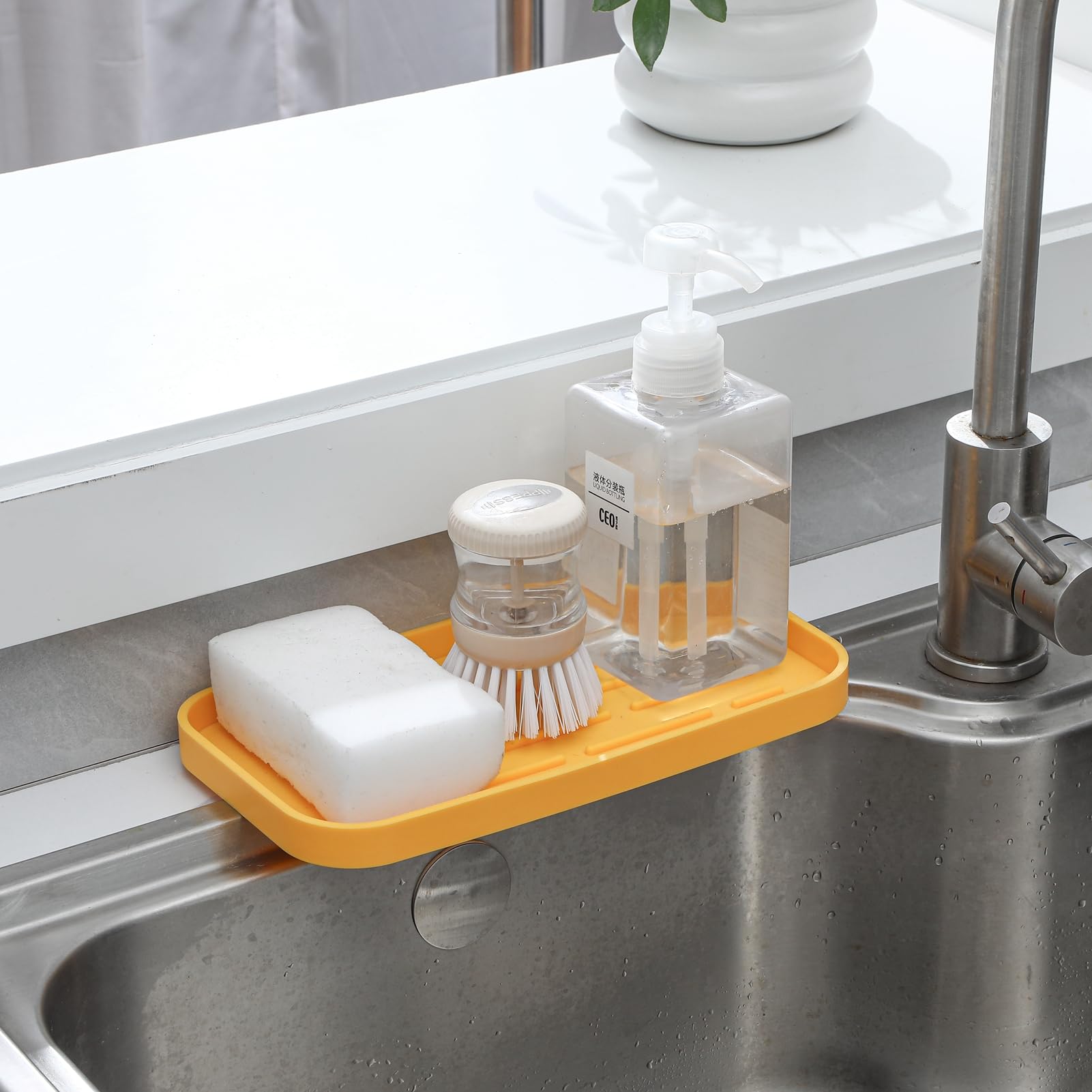 MULTIPLE USAGE: Micoyang Silicone Kitchen Sink Organizer Tray can be used on kitchen or bathroom sinks, counters,used as soap and sponges holder,as a organizer tray for dish soap dispenser, scrubber,shampoo bottles,brushing cup.You can even use it as coffee mat, dish drying mat for glasses, organizer tray for oil dispensing bottles and salt shakers,organizer tray for succulents and other plants