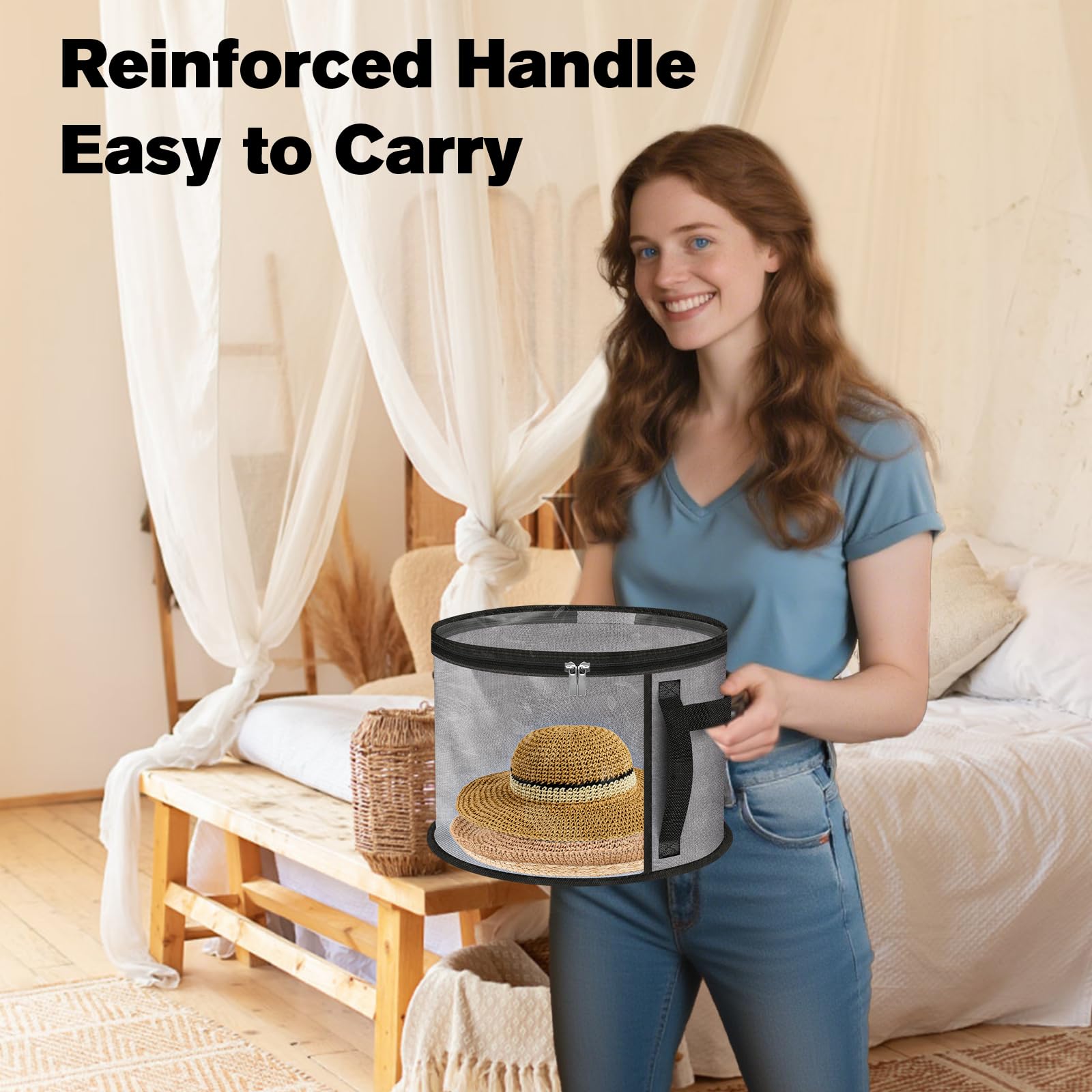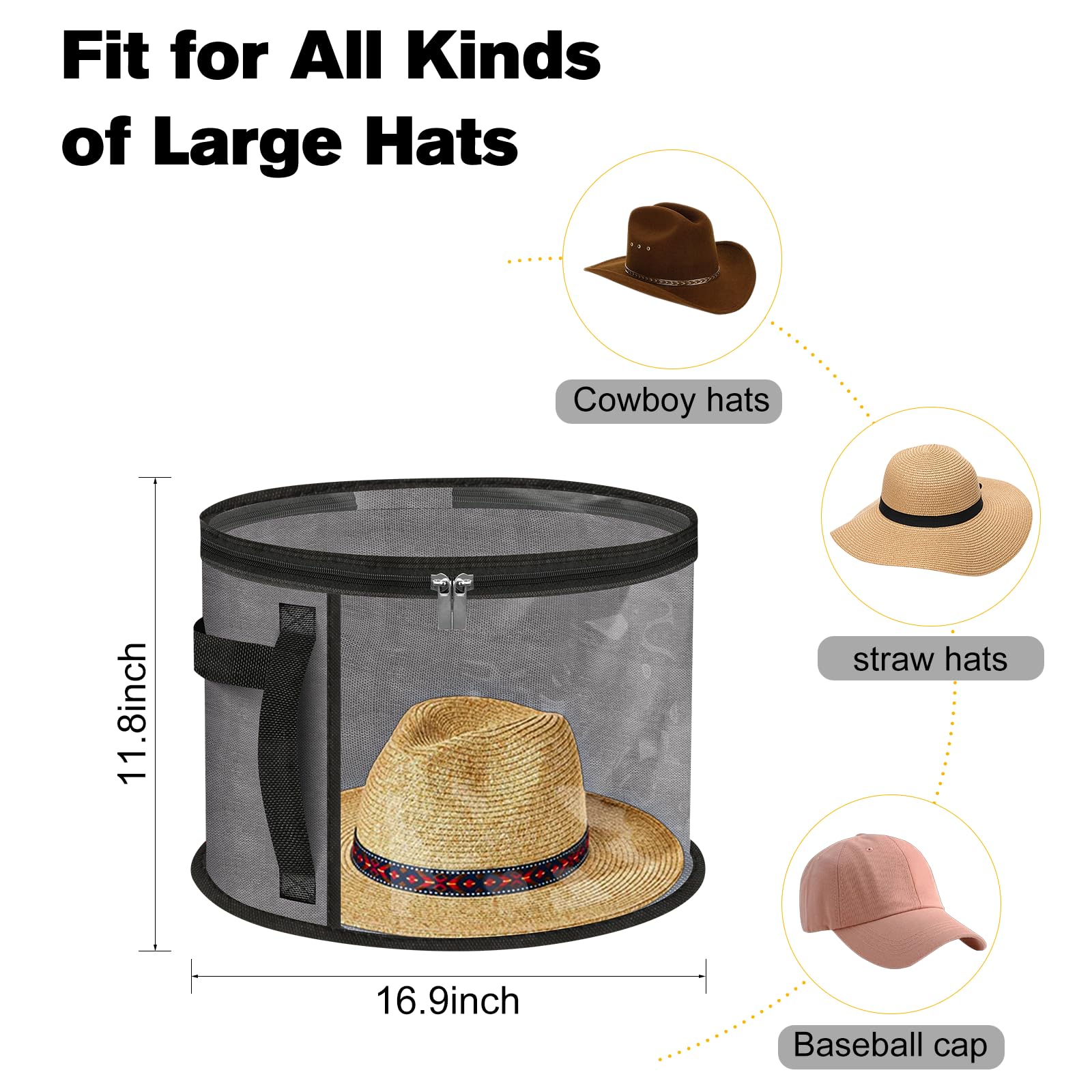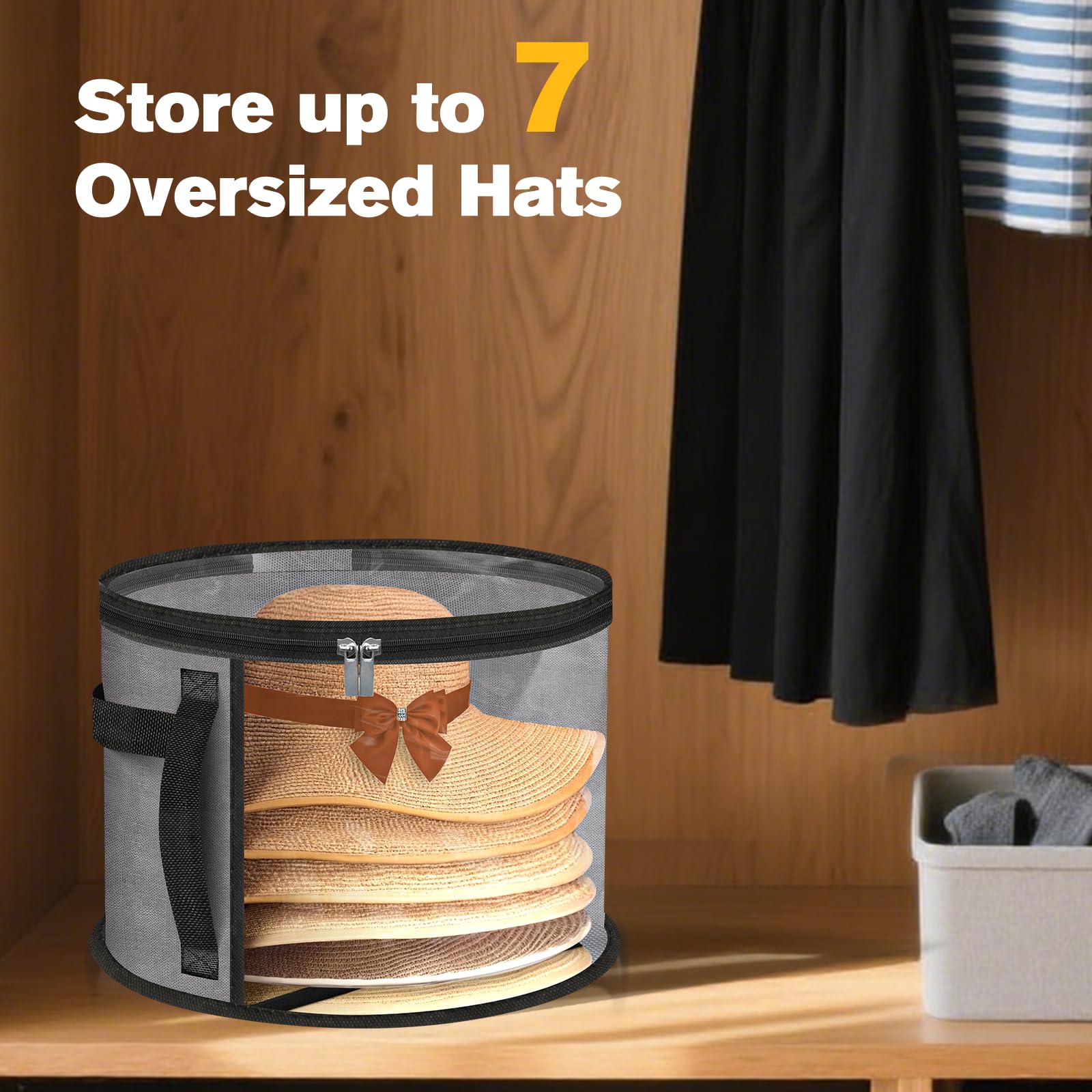 【PORTABLE & EASY TO CARRY】The Hat Storage Case With Handles Is Equipped With Durable, Easy-To-Grip Handles For Easy Portability. Take It With You On Your Travels Or Move It Around The House Effortlessly. A Must-Have Hat Organizer For Closet And The Perfect Travel Companion For Men & Women.