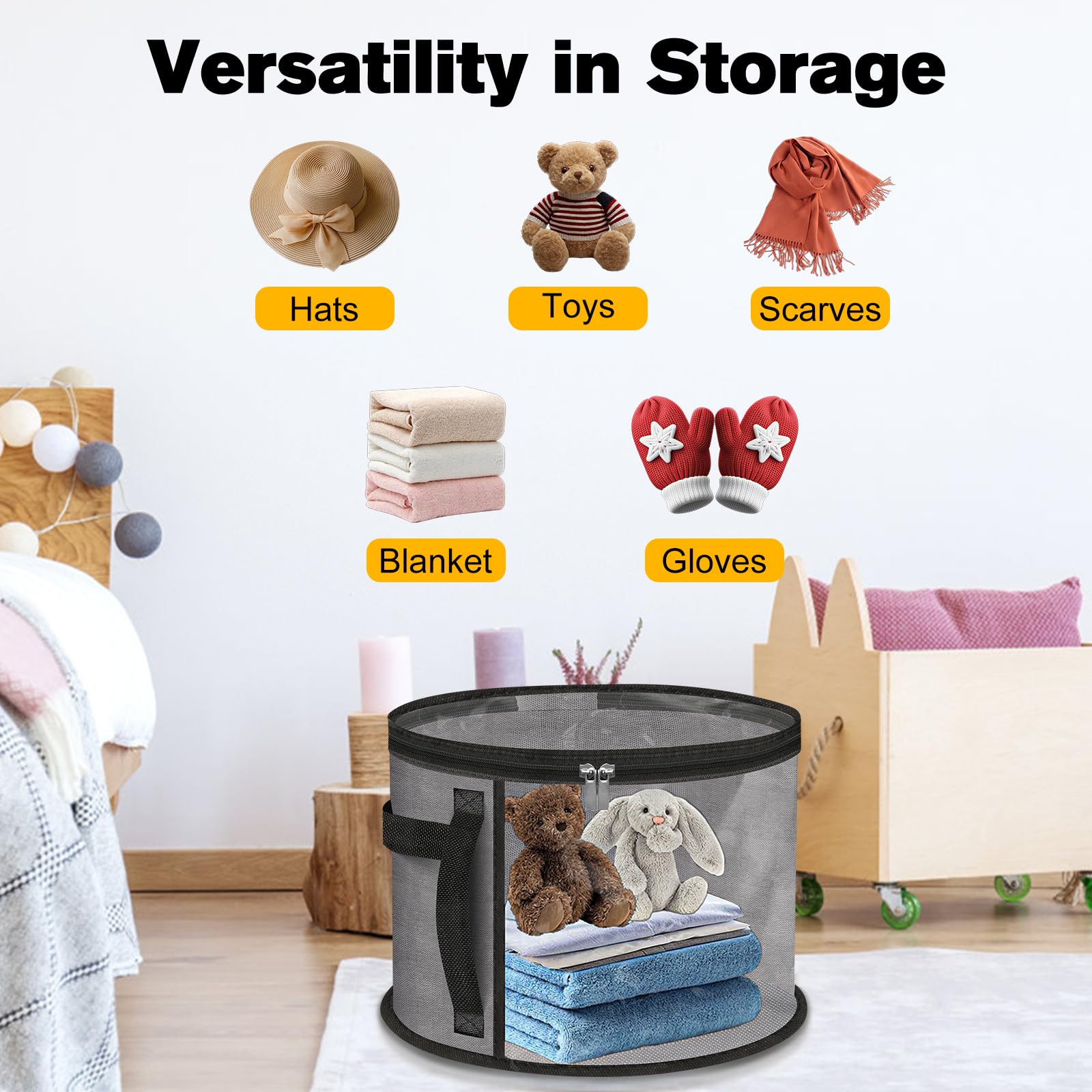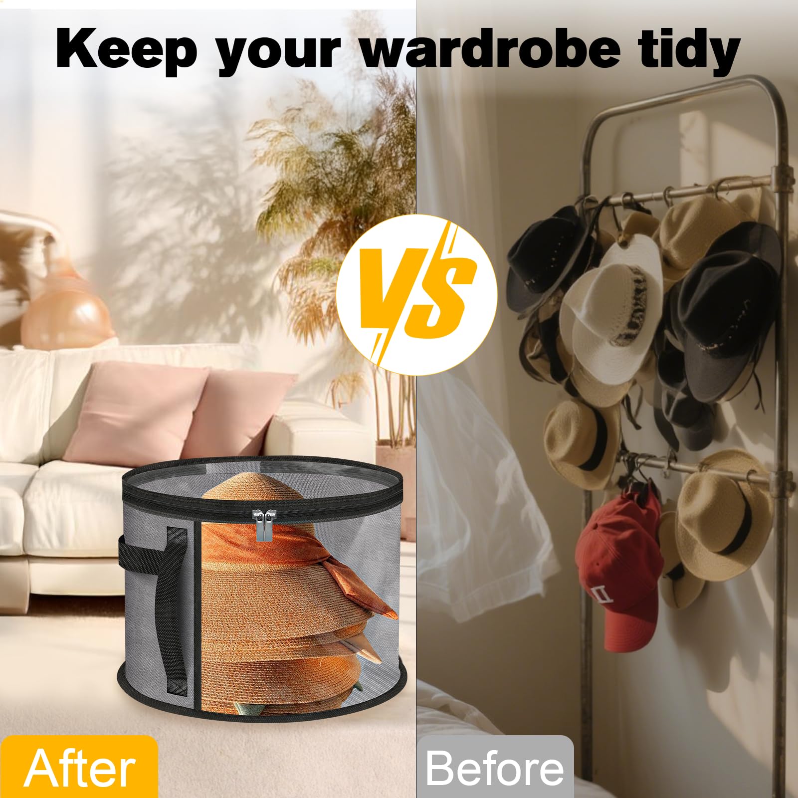 【VERSATILE & SPACE-SAVING】This Hat Organizer Bag Is Not Just For Hats! It Can Also Store Gloves, Scarves, And Other Household Essentials. When Not In Use, It Folds Flat, Making It Perfect For Small Spaces, Dorms, Or Travel Bags. A Great Solution For Hat Box Storage When Space Is Limited.